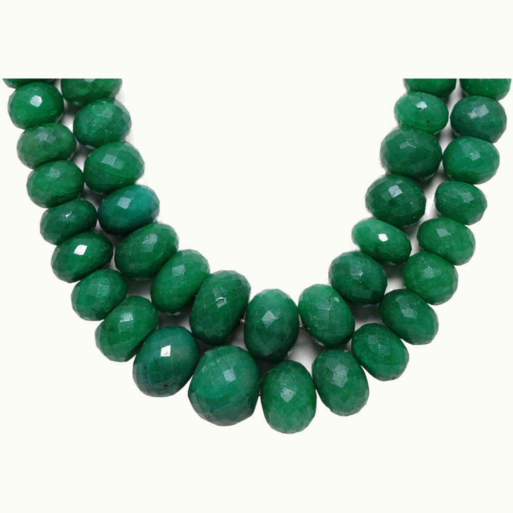 2 Lines 1116 Carats Emerald Gemstone Faceted Beads Necklace