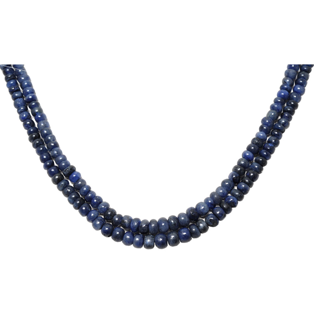 2 Lines 161 Carats Blue Sapphire Gemstone Plain Bead Necklace
