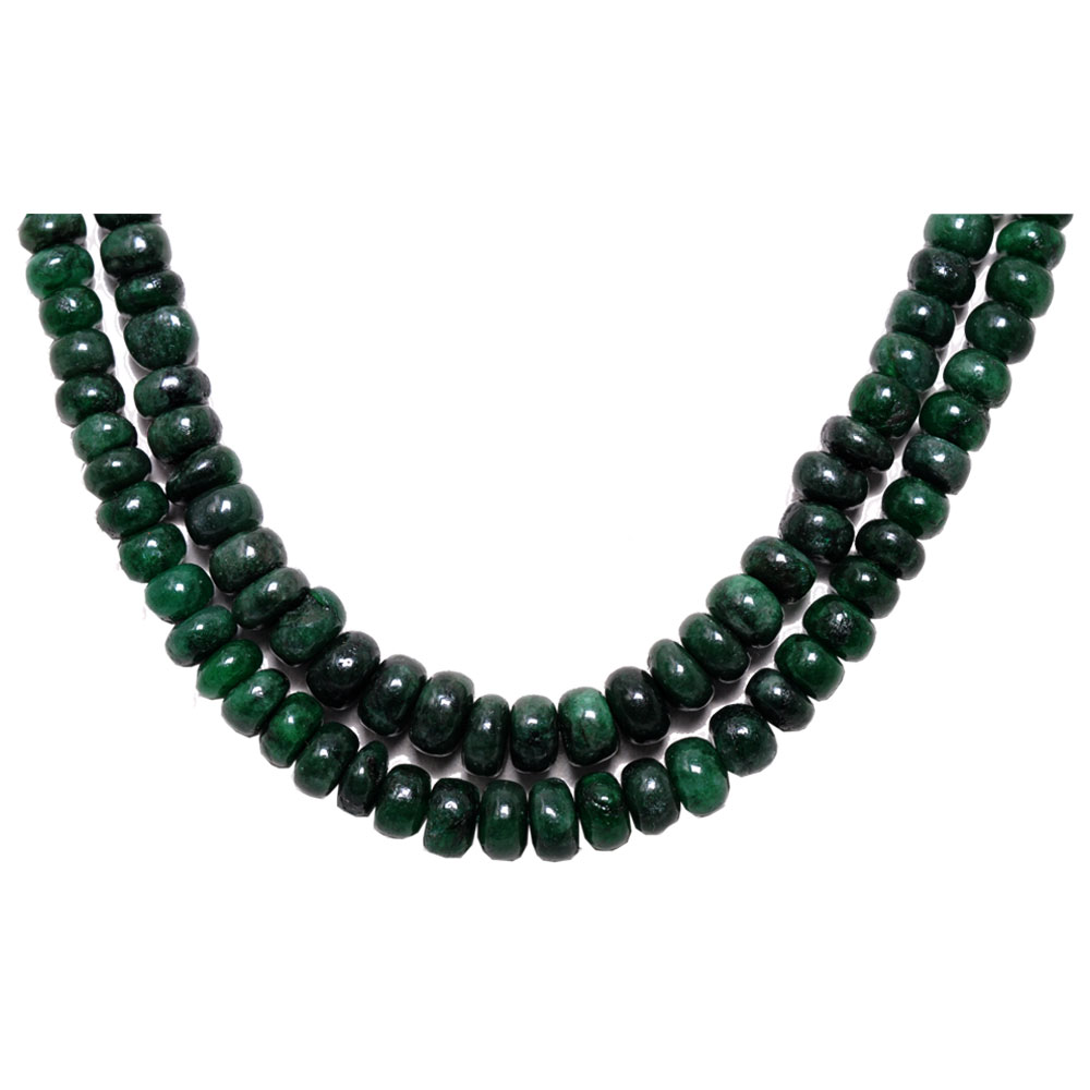 2 Lines 196 Carats Emerald Gemstone Cabochon Beads Necklace