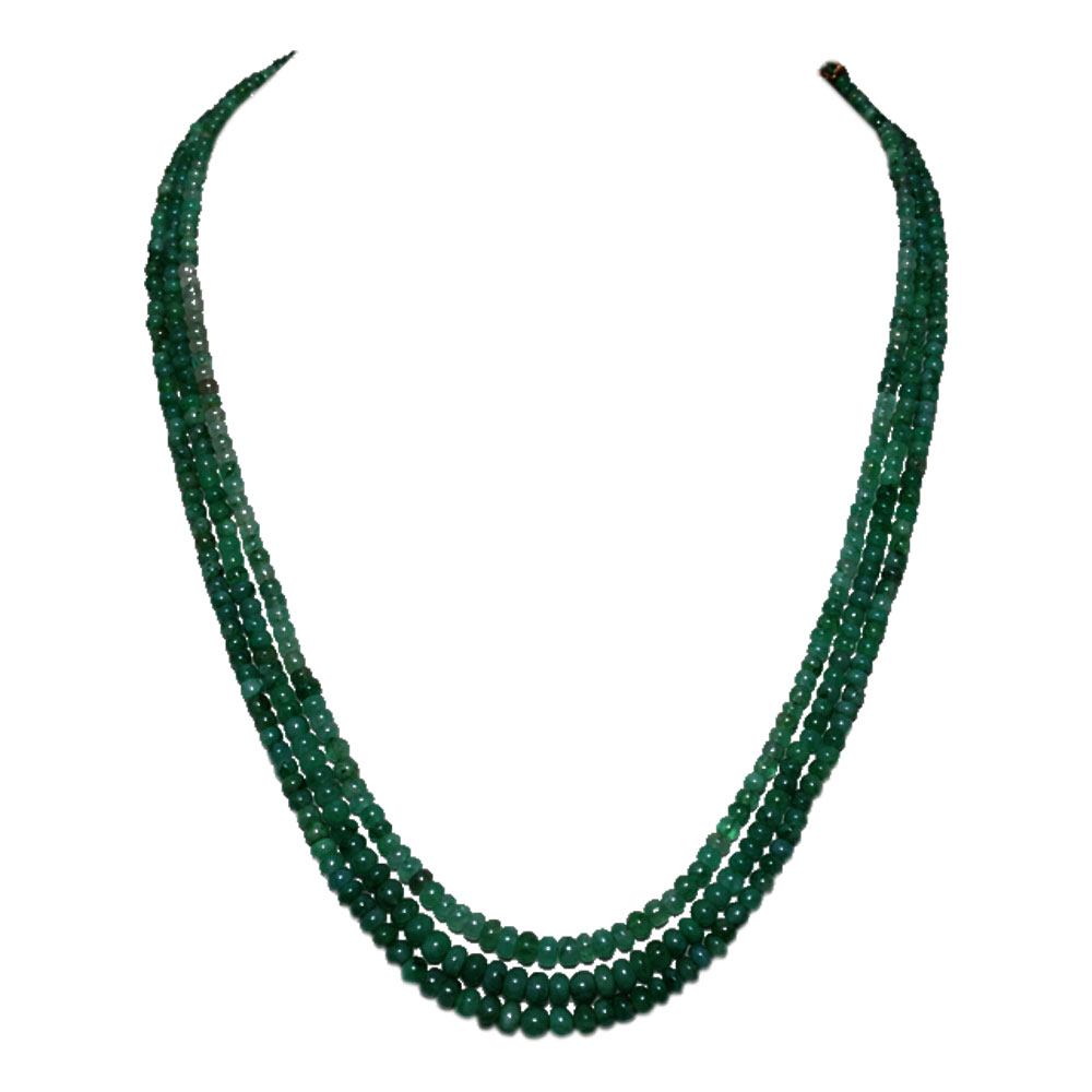 2 Lines 197 Carats Emerald Gemstone Cabochon Beads Necklace