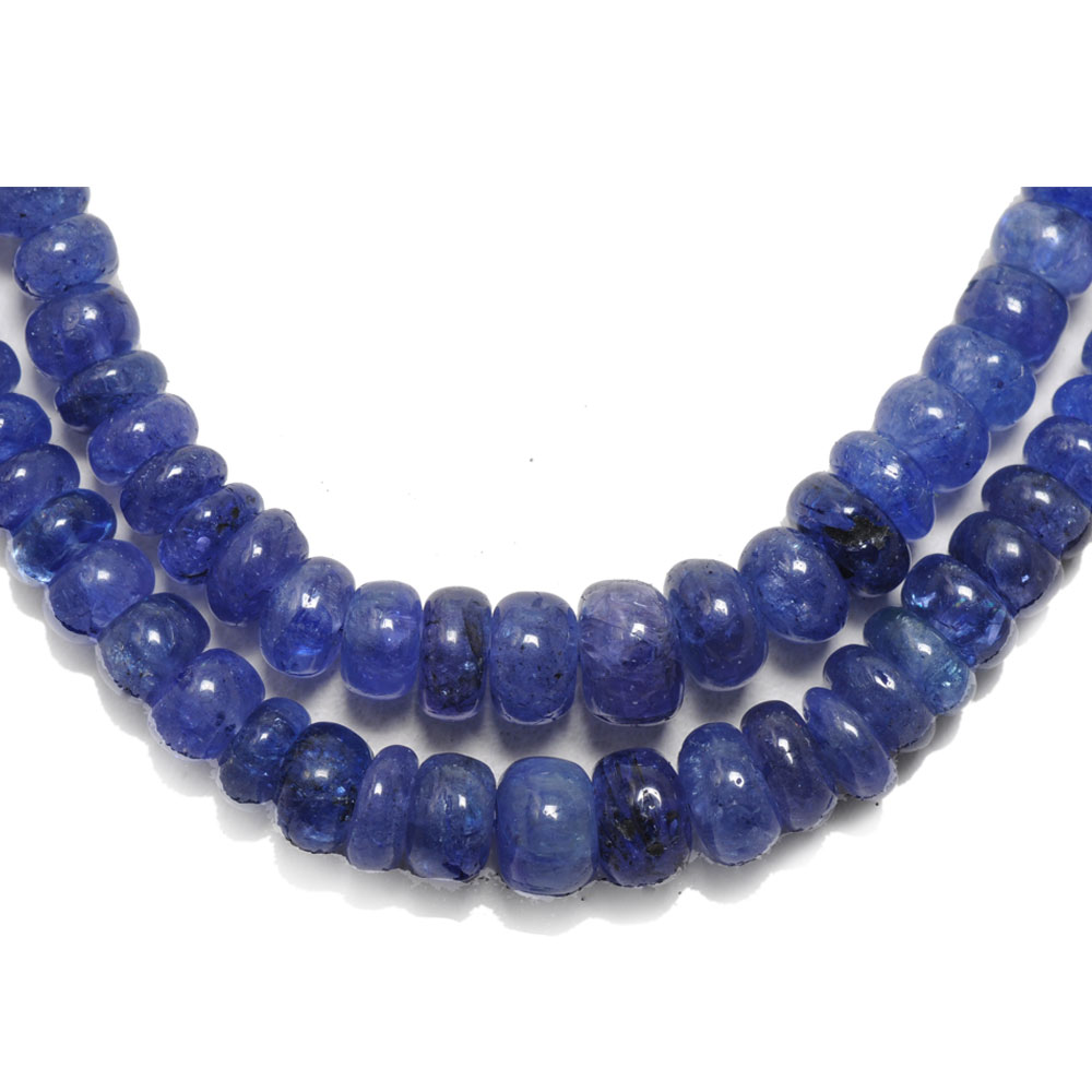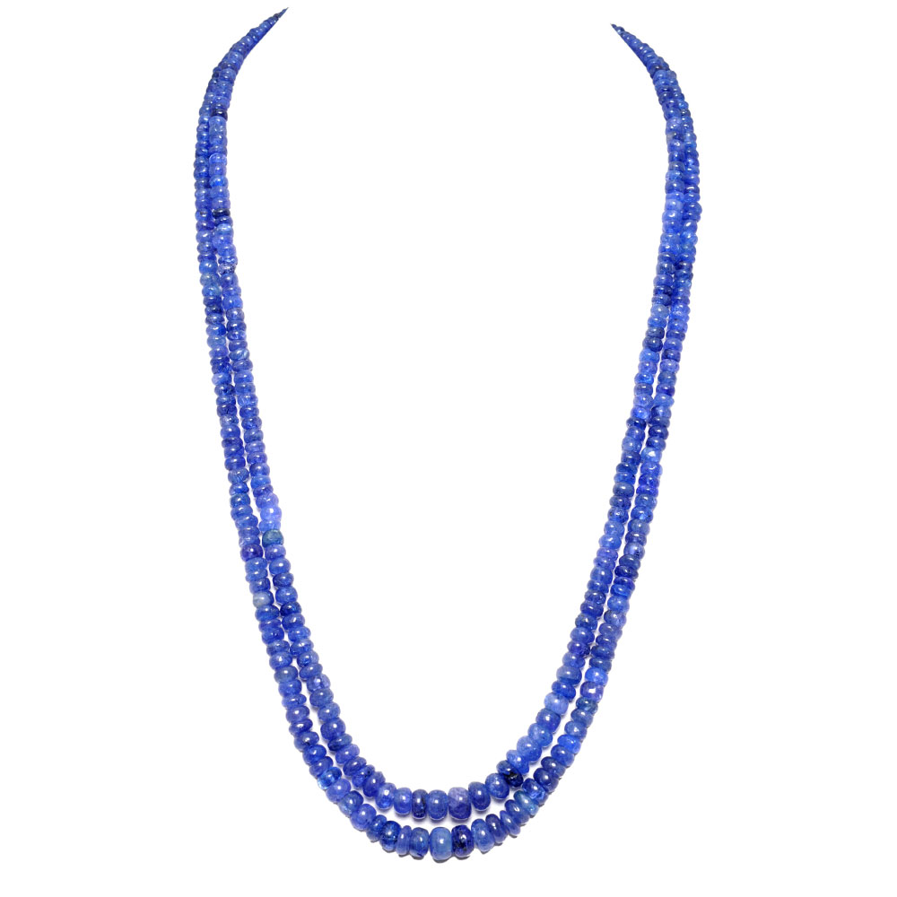 2 Lines 263 Carats Tanzanite Gemstone Plain Beads Necklace