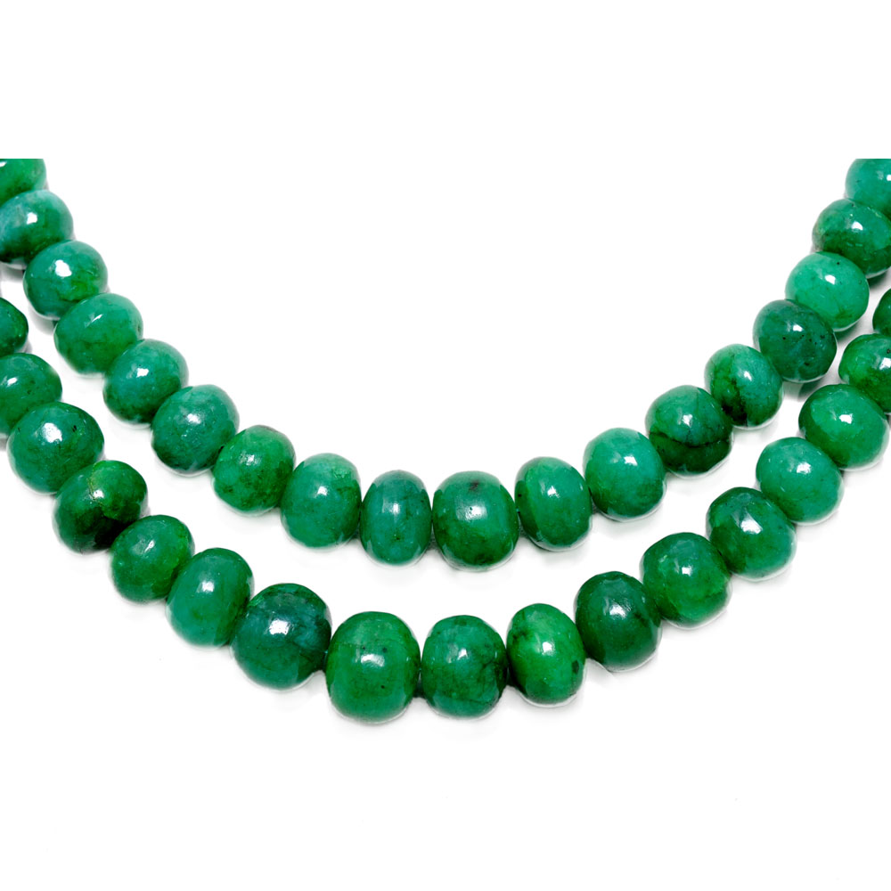 Gehna Jaipur 2 Lines Emerald Gemstone Cabochon Beads Necklace, 510 Carats. Luxurious and striking, this necklace is ideal for girls & women who want a rich, multi-strand emerald design.