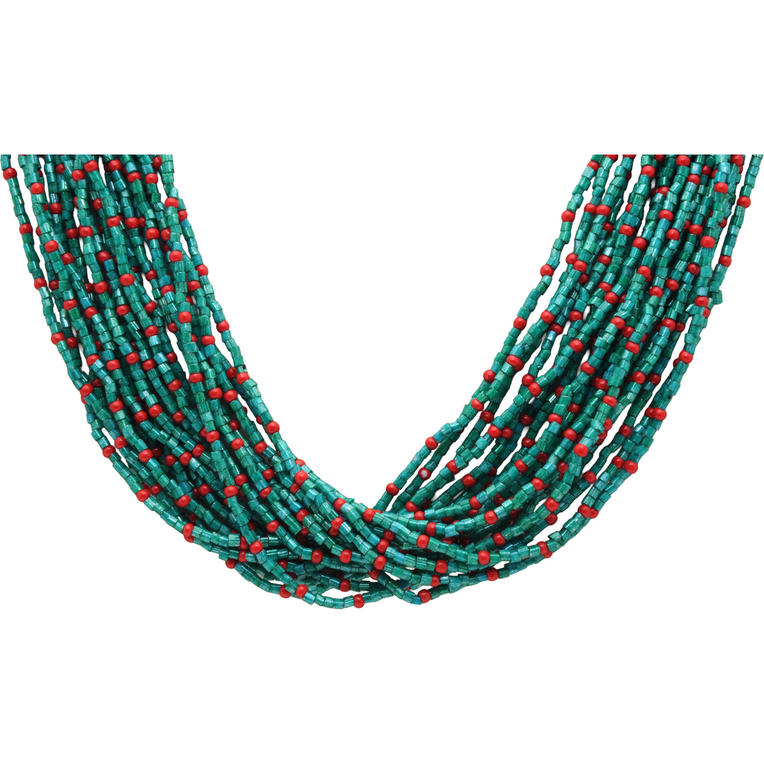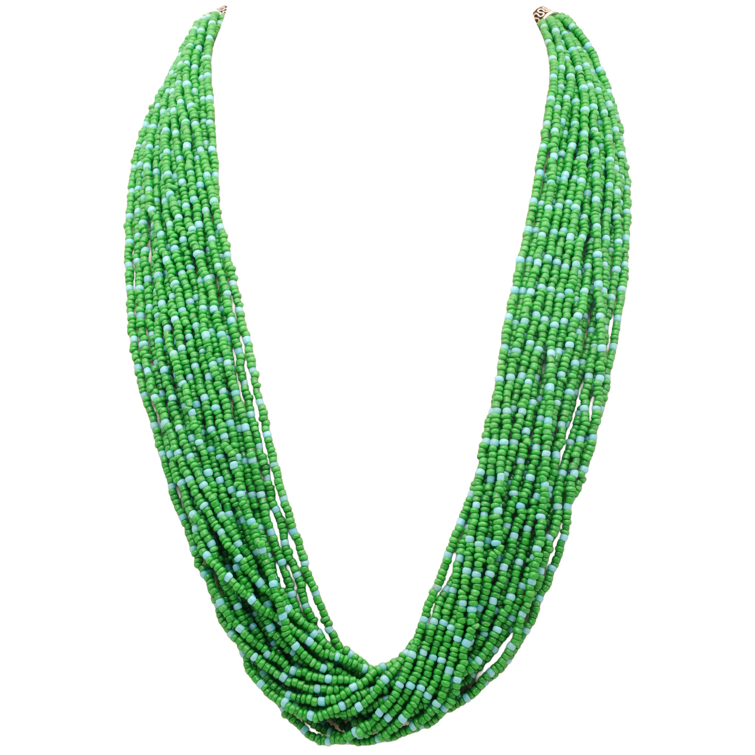 20-Rows Emerald And Red Jasper Glass Bead Necklace