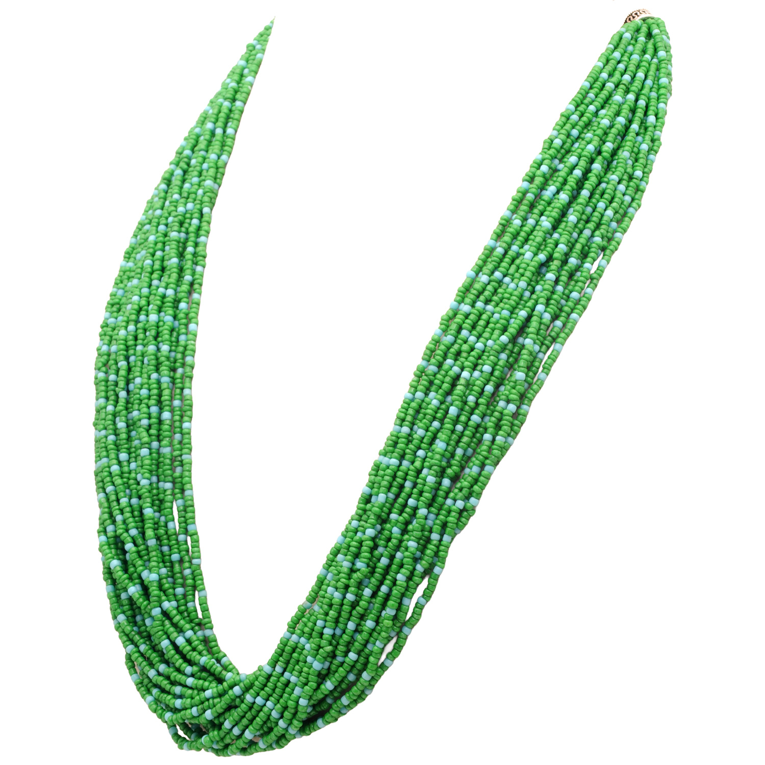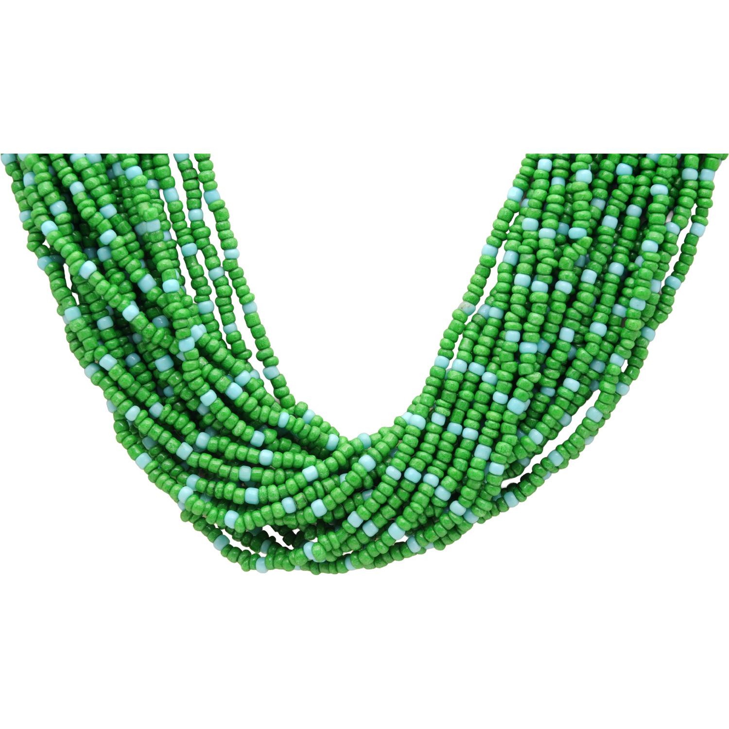 20-Rows Emerald And Turquoise Glass Bead Necklace