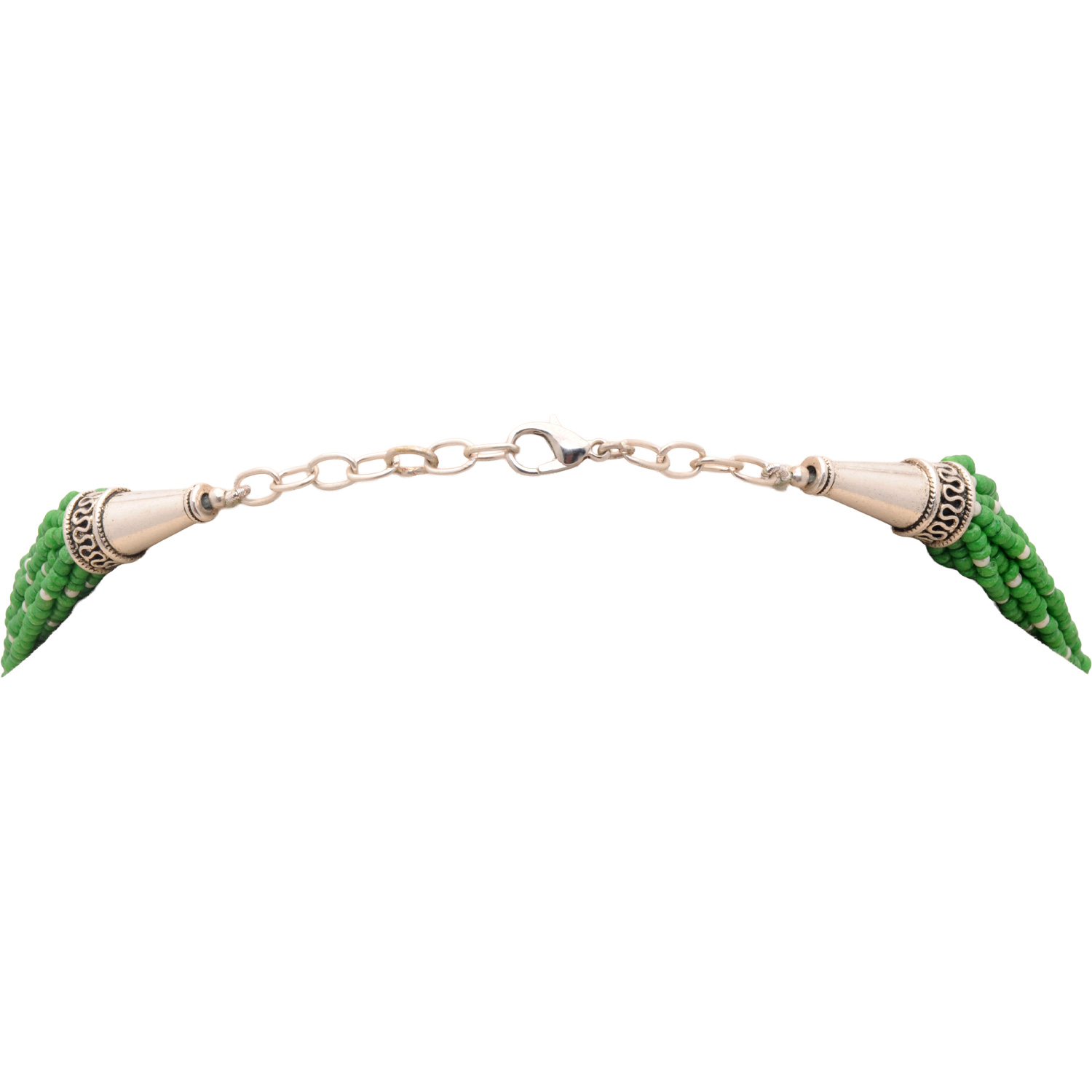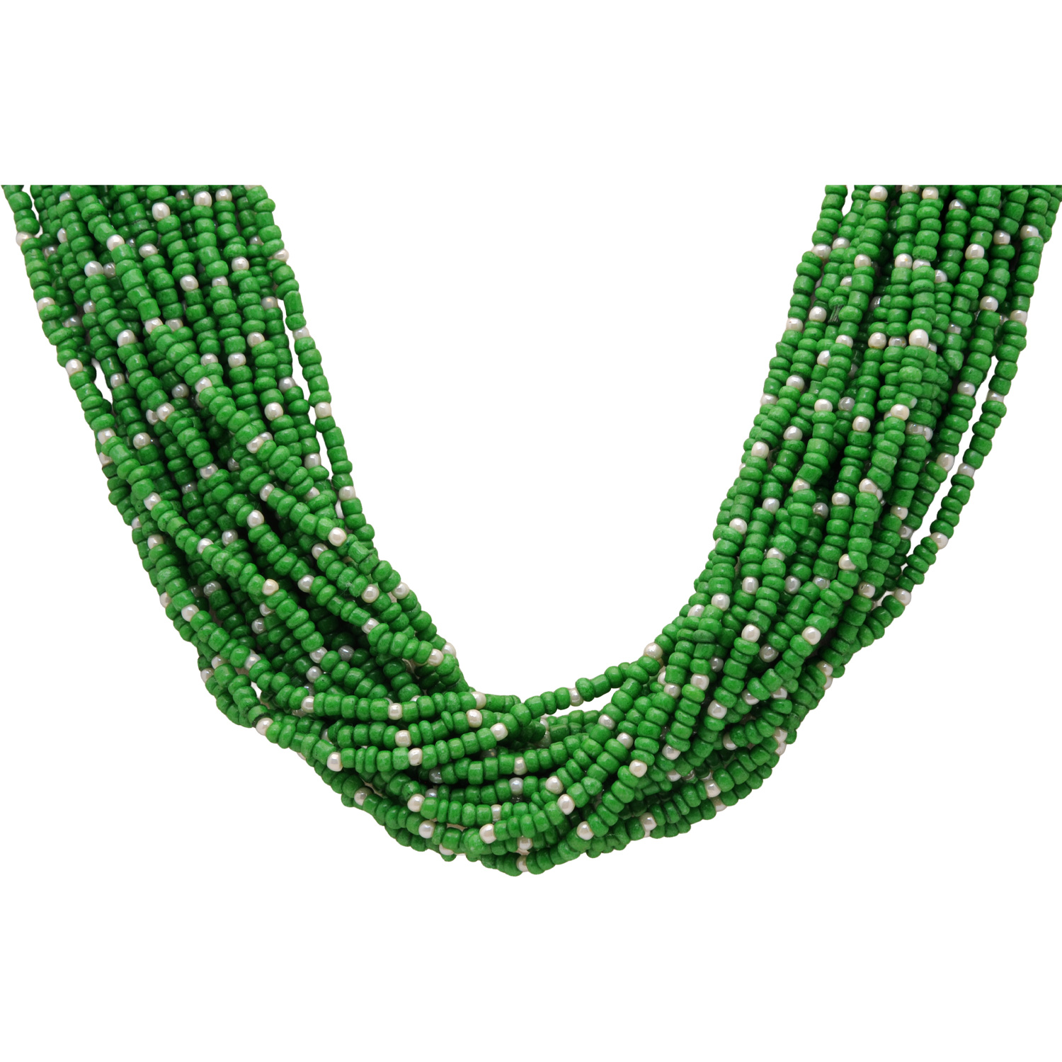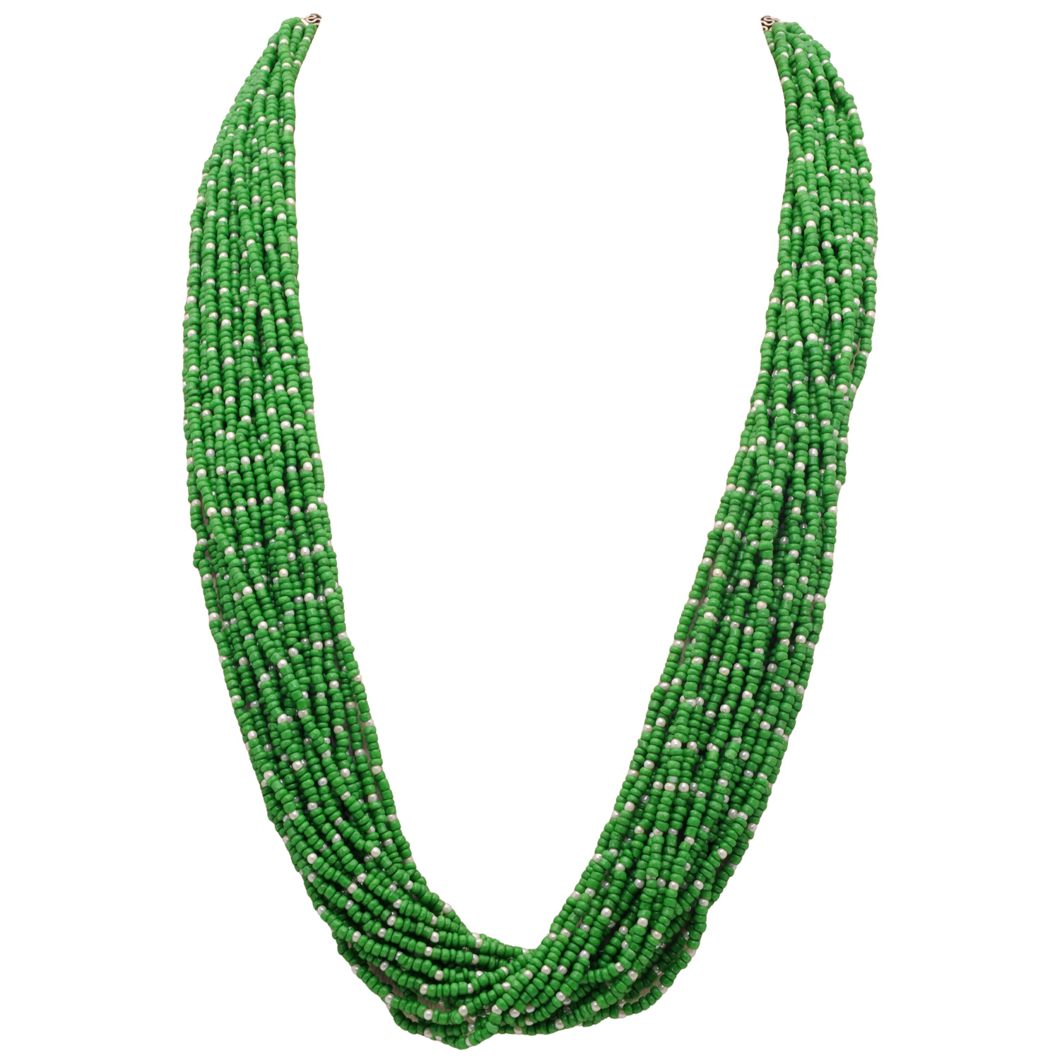 20-Rows Pearl And Emerald Glass Bead Necklace