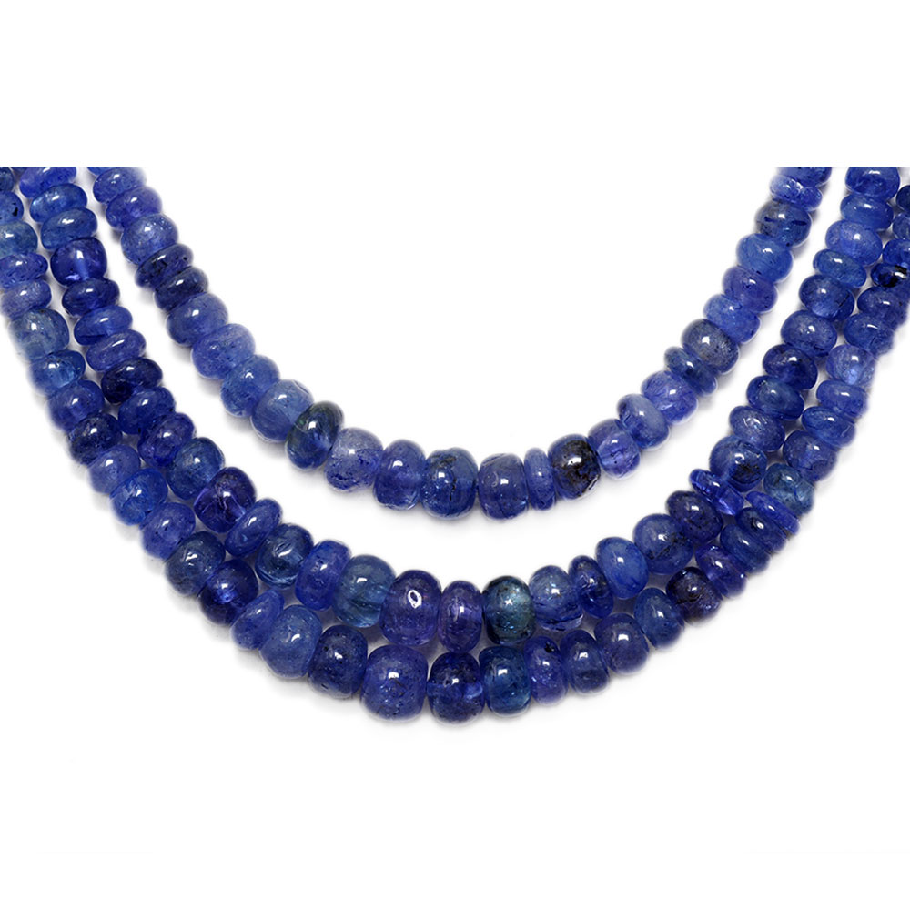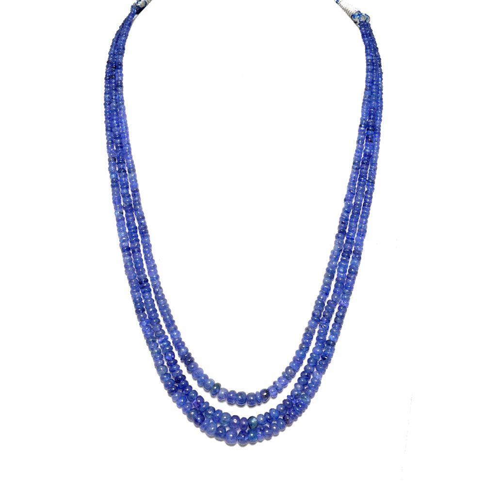 3 Lines 275 Carats Tanzanite Gemstone Plain Beads Necklace