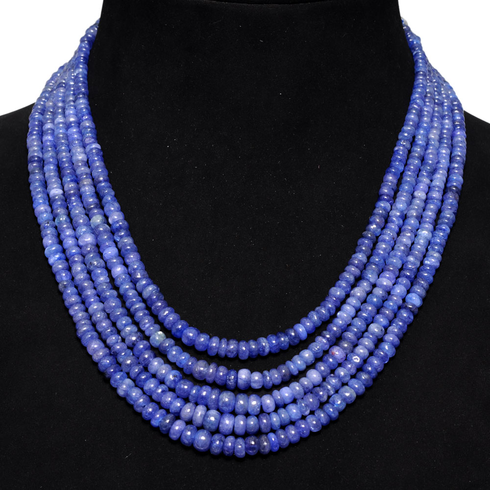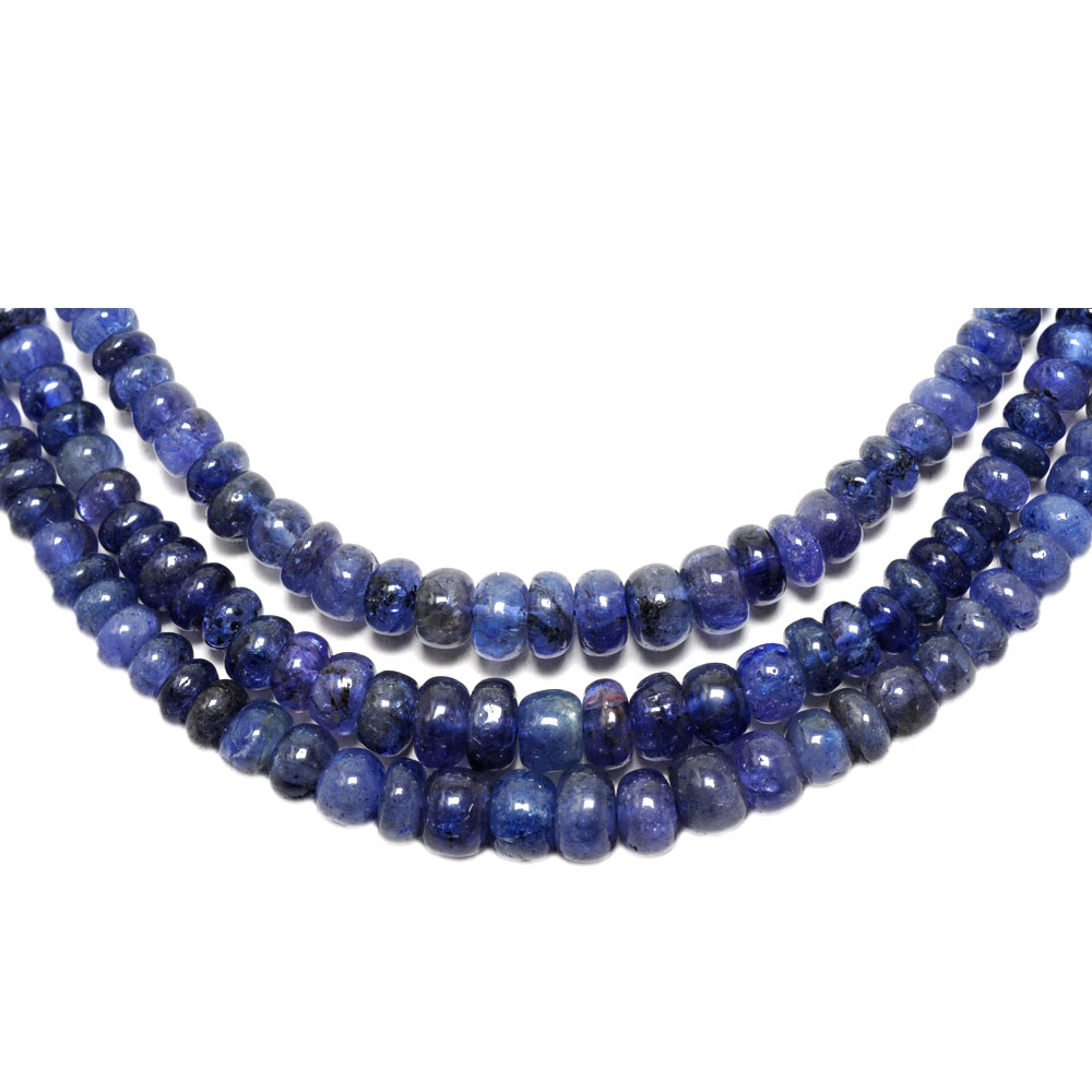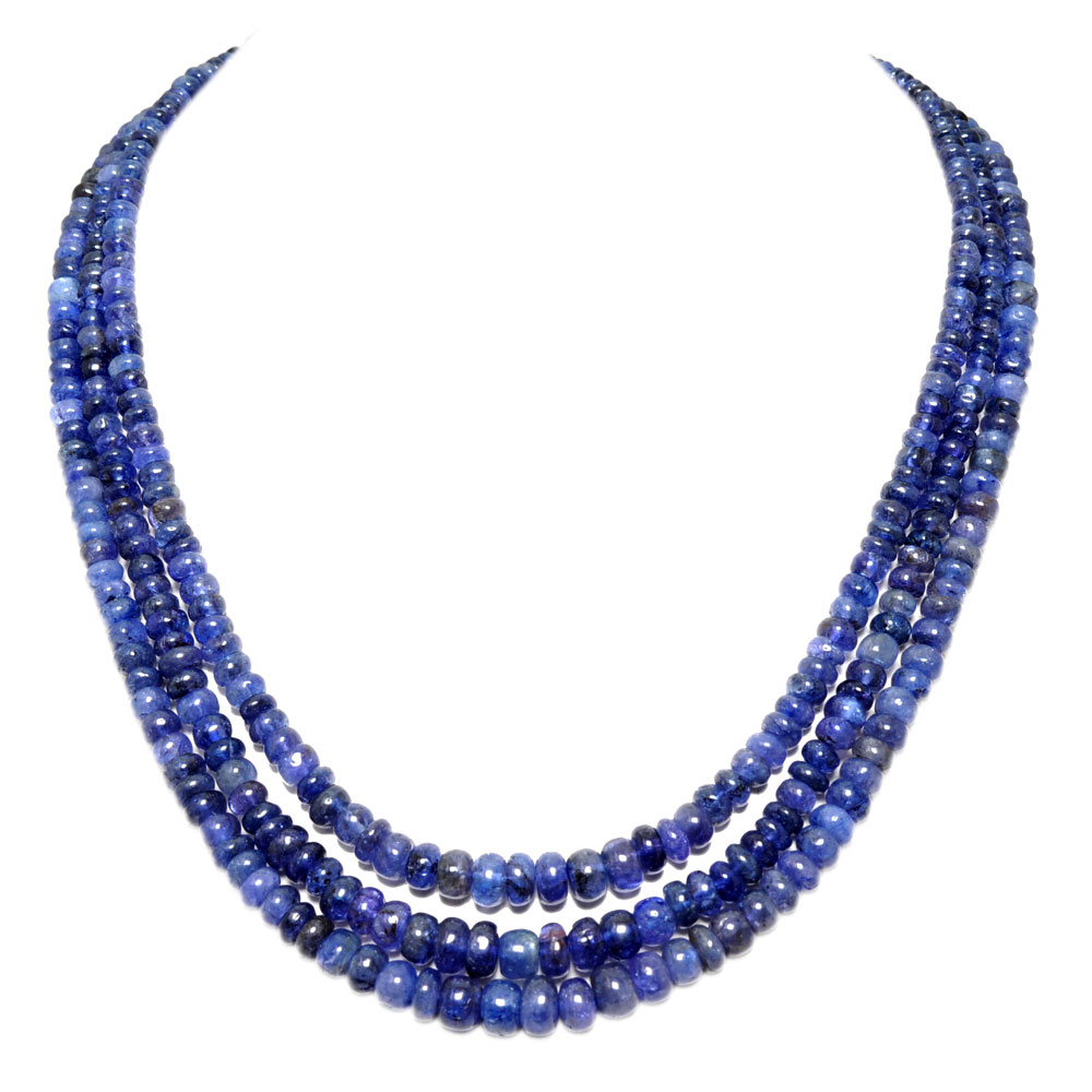 3 Lines 314 Carats Tanzanite Gemstone Plain Beads Necklace