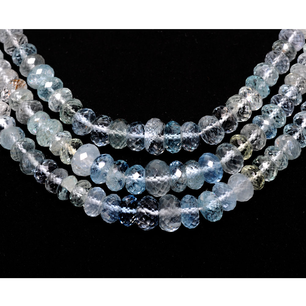 3 Lines 389 Carats Aquamarine Gemstone Faceted Bead Necklace