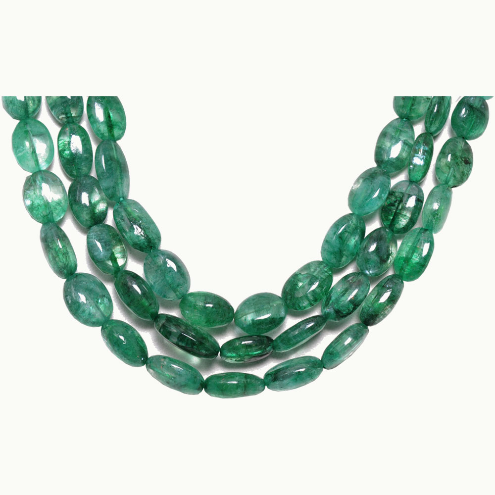 3 Lines 401 Carats Emerald Gemstone Oval Shaped Beads Necklace