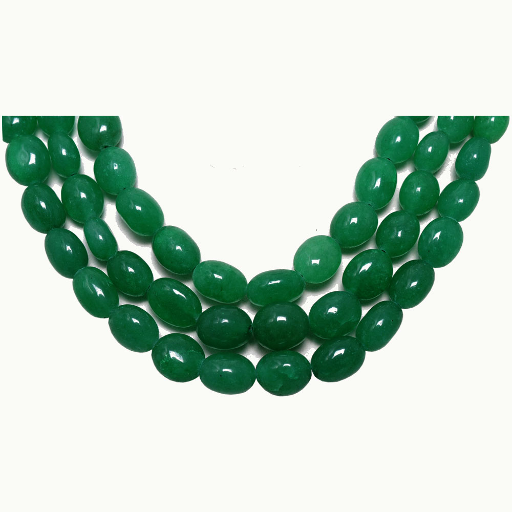 3 Lines 723 Carats Emerald Gemstone Oval Shaped Beads Necklace