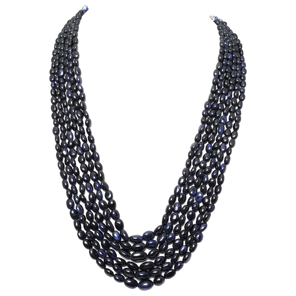 Gehna Jaipur’s 3 Lines 761 Carats Blue Sapphire Gemstone 5X7 Mm Faceted Beads Necklace showcases a sophisticated multi-row design. Ideal for girls and women, this necklace features three rows of dazzling blue sapphire beads.