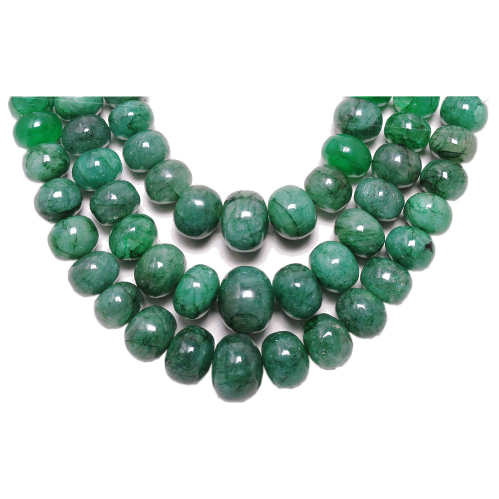 3 Lines 806 Carats Emerald Gemstone Cabochon Beads Necklace