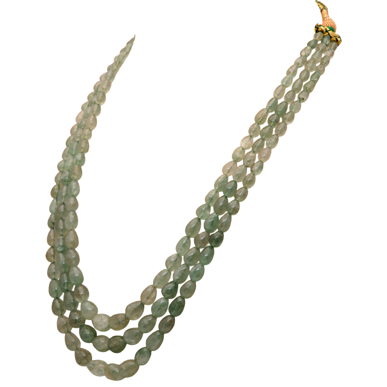 3 Rows Natural Russian Emerald Tear Drop Shape Genuine Gemstone Necklace NP1513