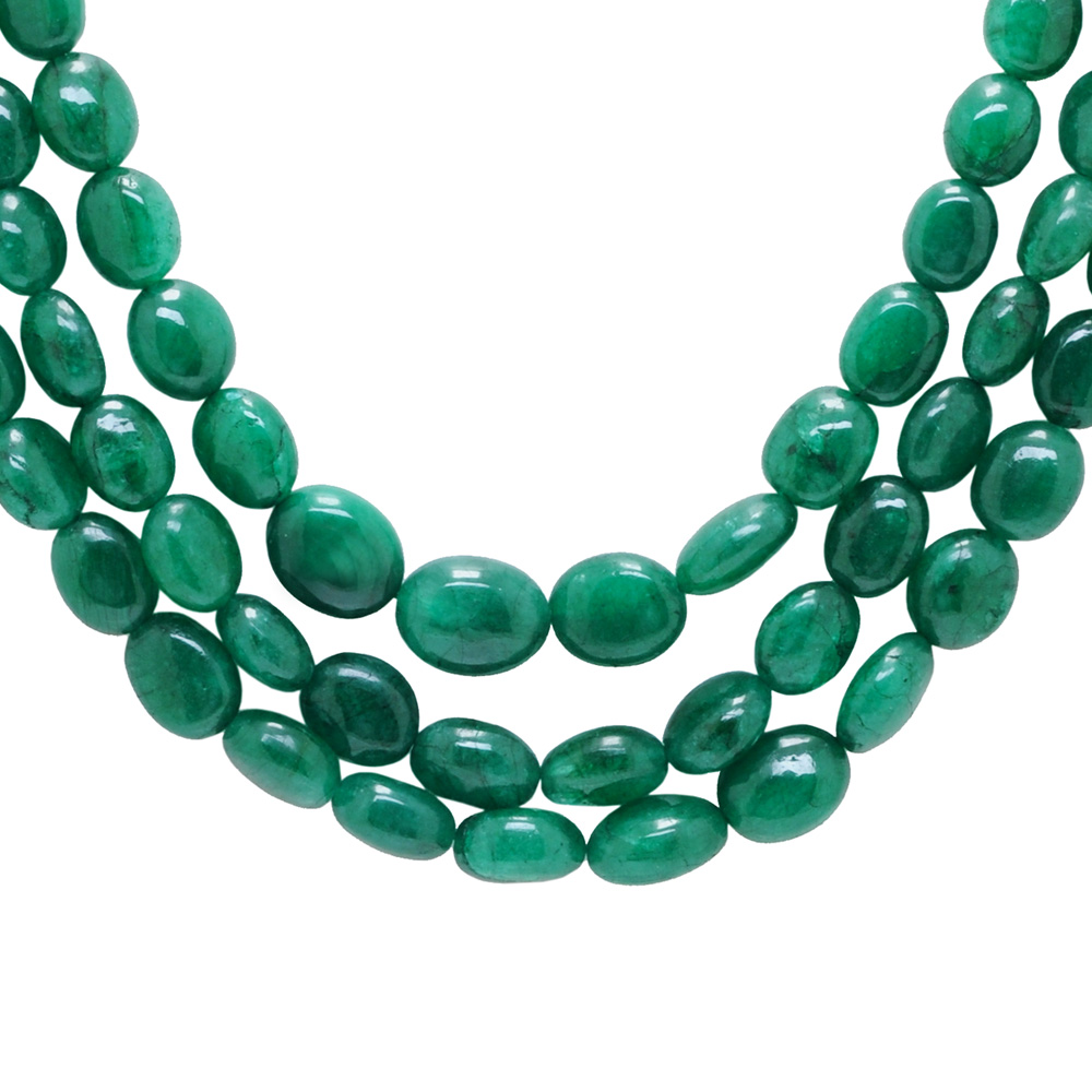 3 Rows Of Necklace Emerald Gemstone Oval Shape Beads