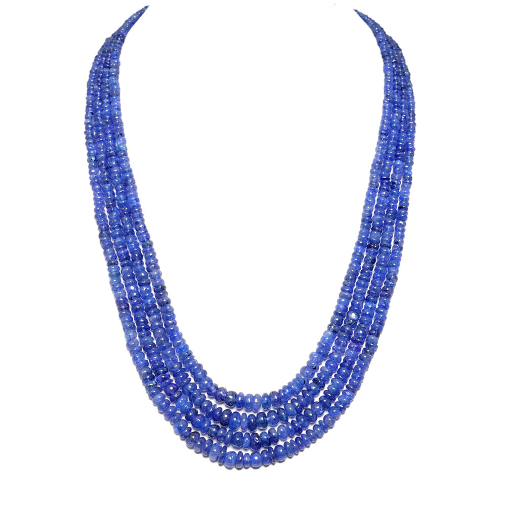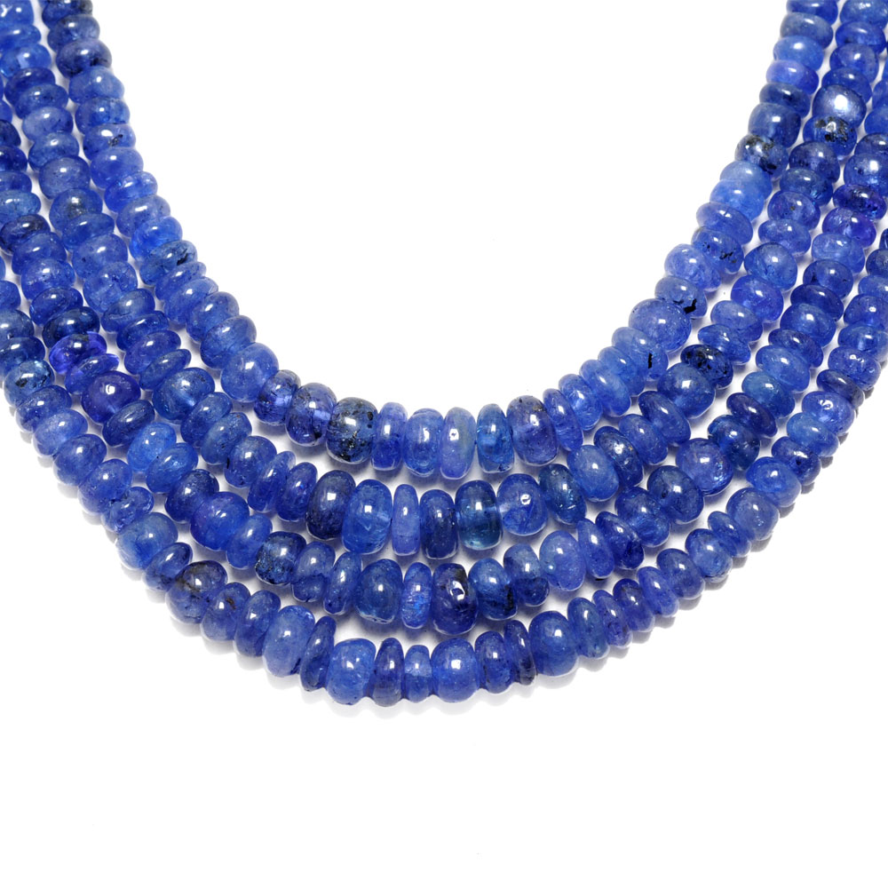 4 Lines 340 Carats Tanzanite Gemstone Plain Beads Necklace