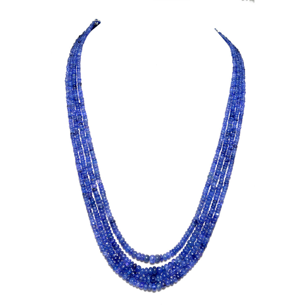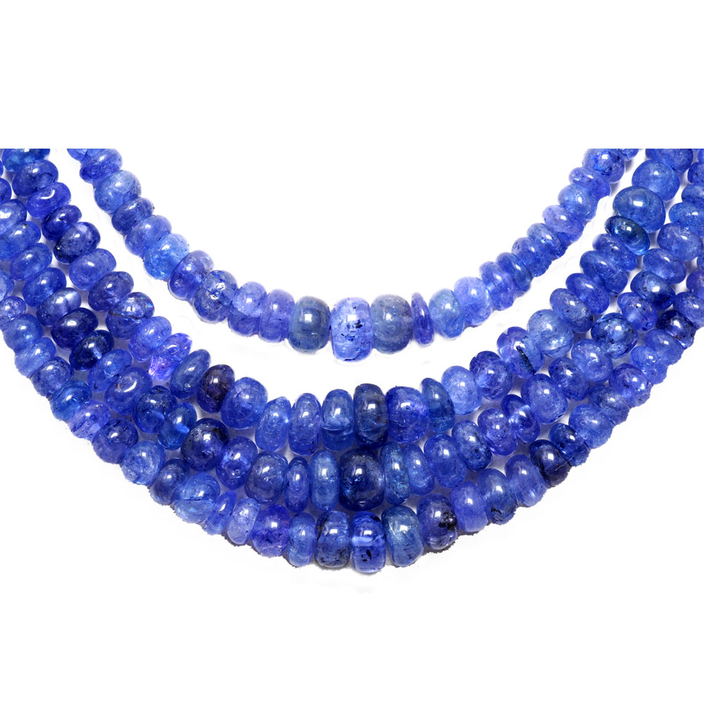 4 Lines 352 Carats Tanzanite Gemstone Plain Beads Necklace