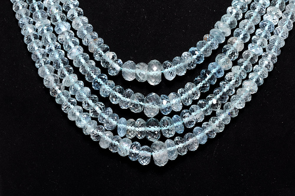 4 Lines 527 Carats Aquamarine Gemstone Faceted Bead Necklace