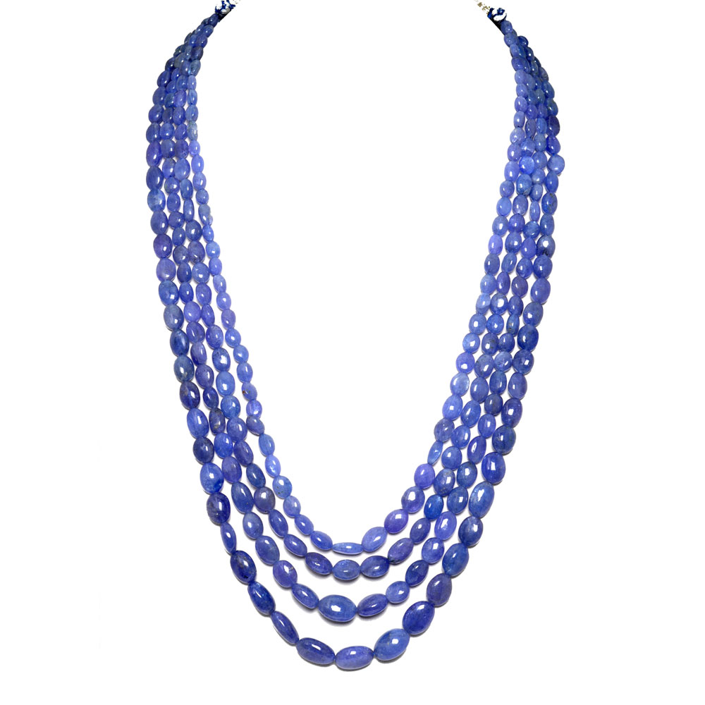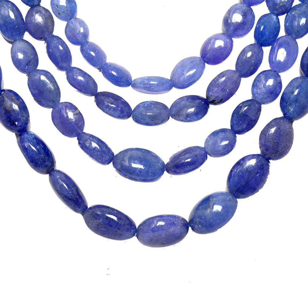 4 Lines 535 Carats Tanzanite Gemstone Plain Beads Necklace