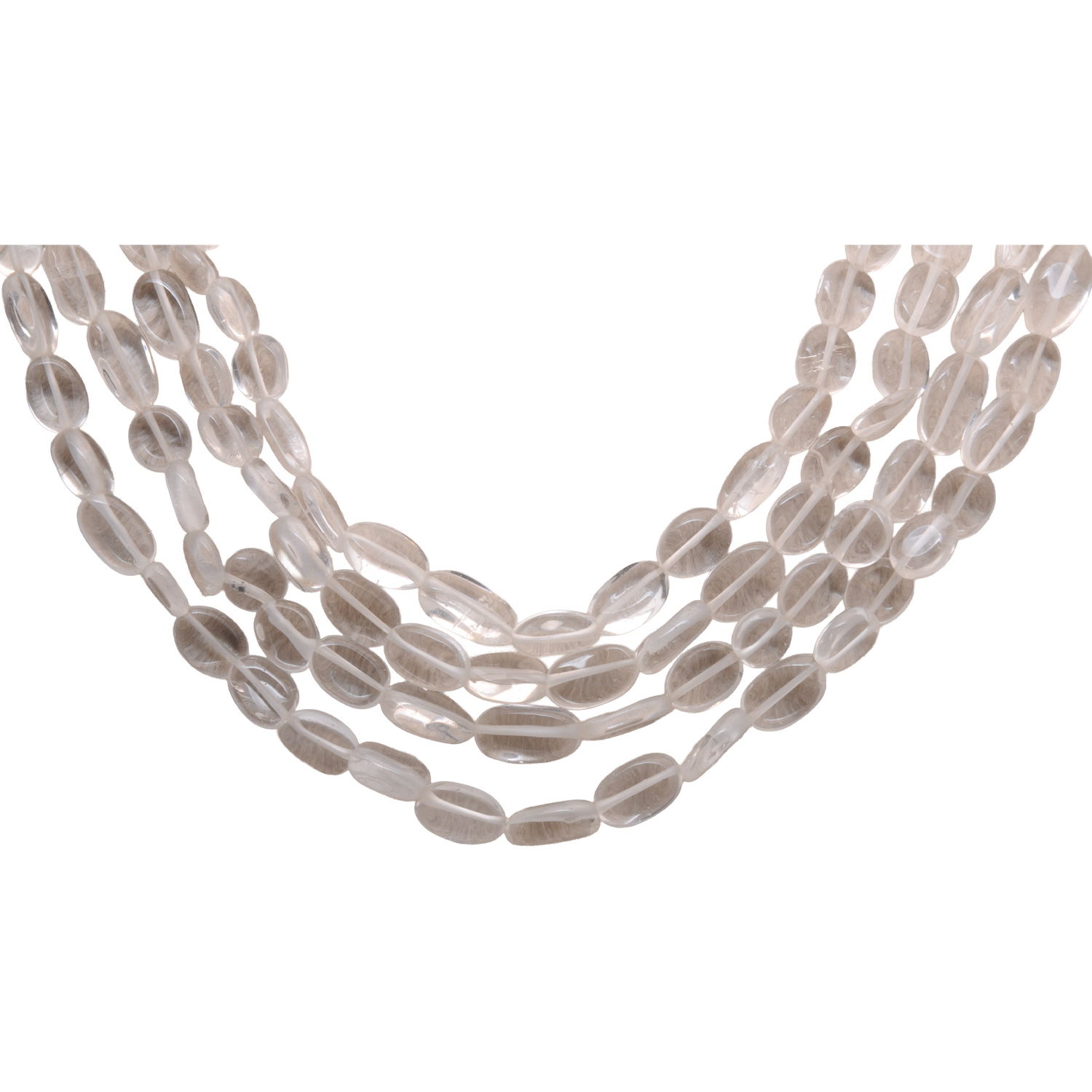 4 Rows Necklace of Rock-Crystal Oval Shape Bead Necklace