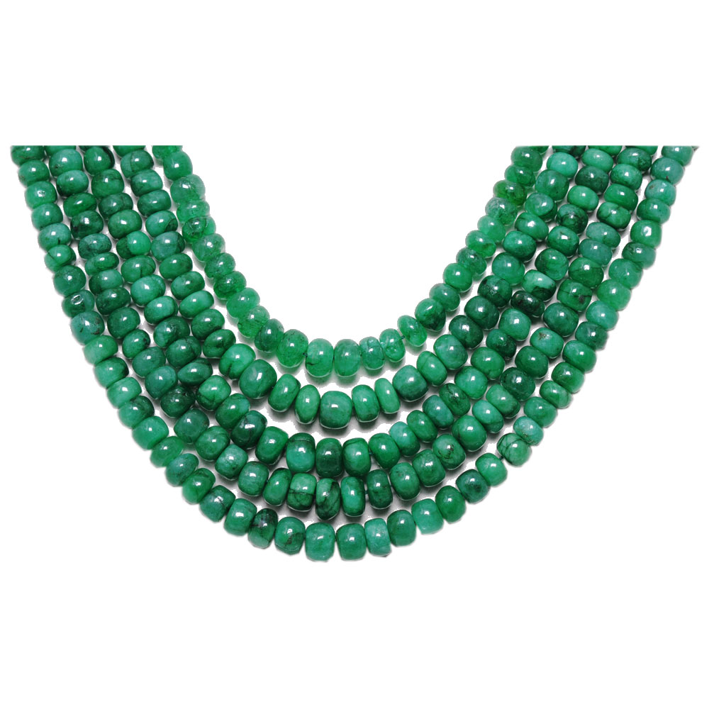 5 Lines 413 Carats Emerald Gemstone Cabochon Beads Necklace