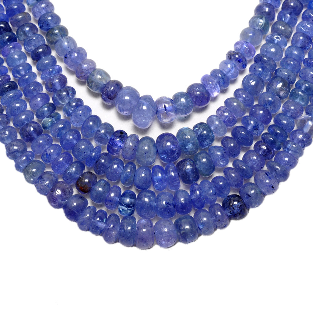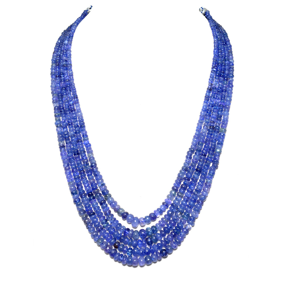 5 Lines 433 Carats Tanzanite Gemstone Plain Beads Necklace