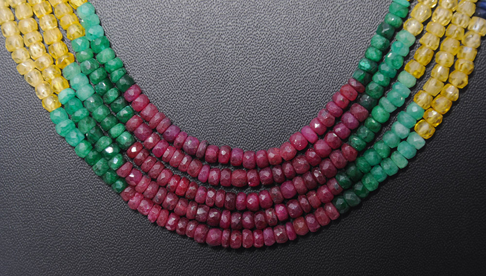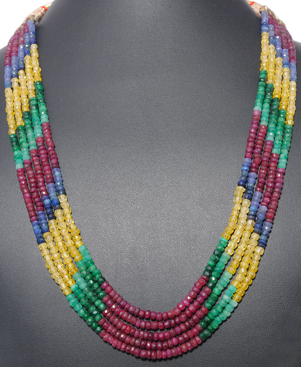 5 Lines 471 Carats Ruby Emerald Sapphire Precious Gemstone Beads Necklace