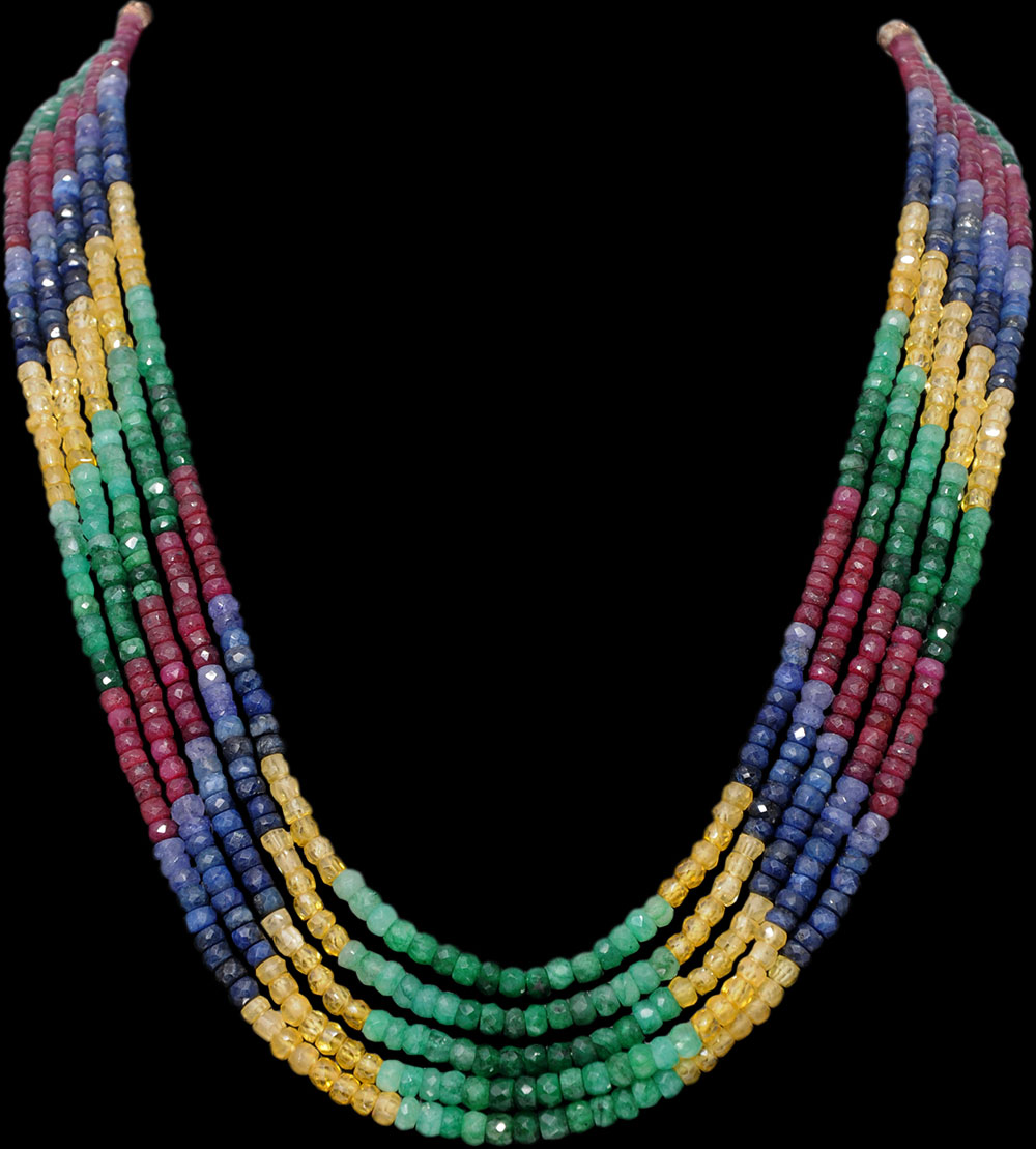 5 Lines 512.5 Cts Ruby Emerald Sapphire Precious Gemstone Bead Necklace