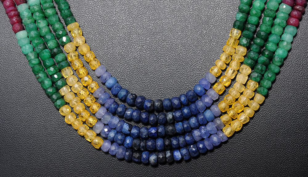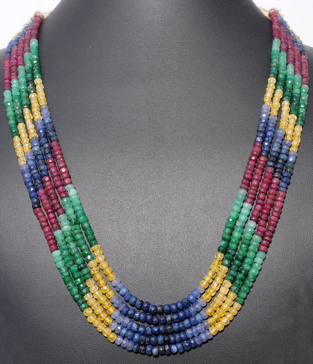 5 Lines 530 Carats Emerald Ruby Sapphire Precious Gemstone Bead Necklace
