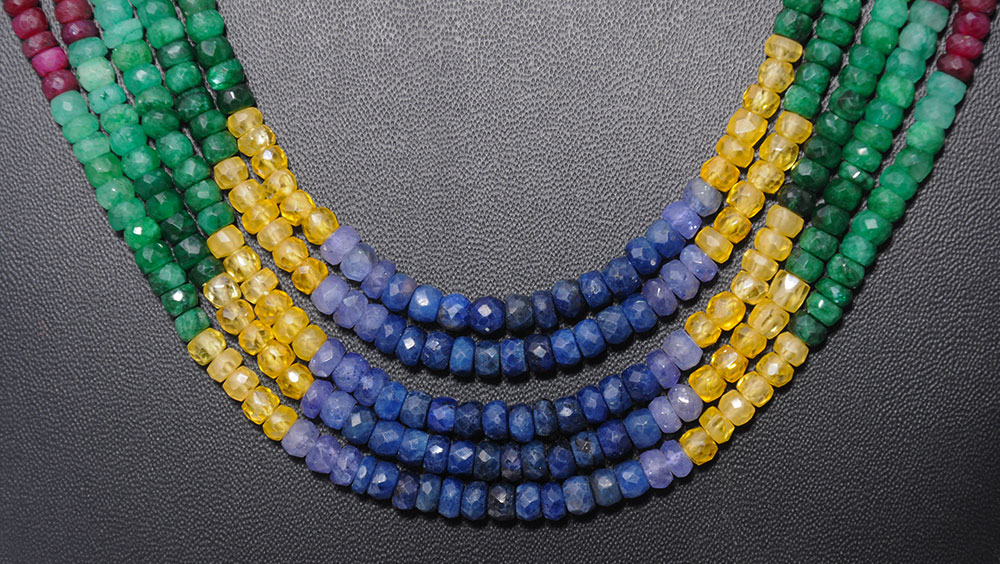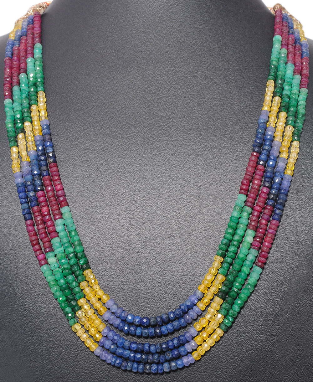 5 Lines 532 Carats Precious Gemstone Multi-Color Faceted Bead Necklace
