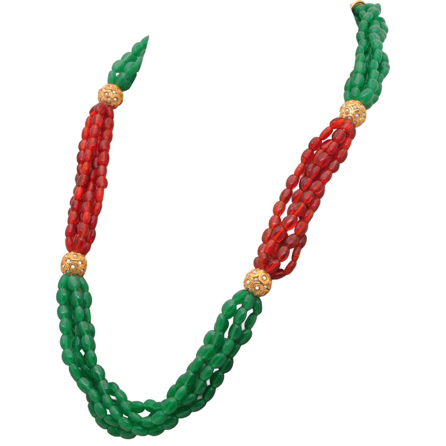 5 Rows of Ruby & Emerald bead with Pearl studded jadau ball Necklace