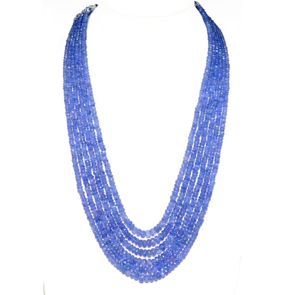 6 Lines 444 Caratss Tanzanite Gemstone Faceted Beads Necklace