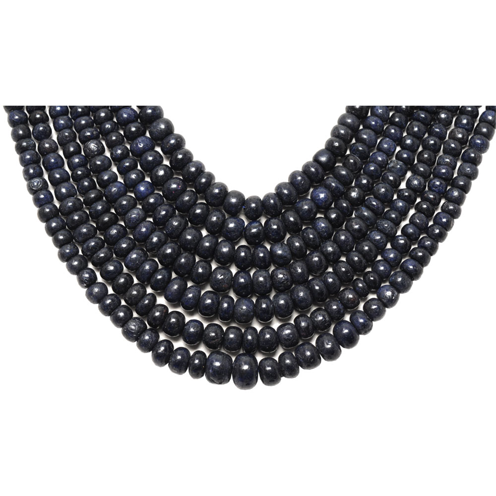 7 Lines 705 Carats Blue Sapphire Gemstone Plain Bead Necklace