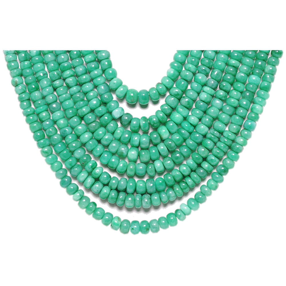 8 Lines 722 Carats Emerald Gemstone Cabochon Beads Necklace