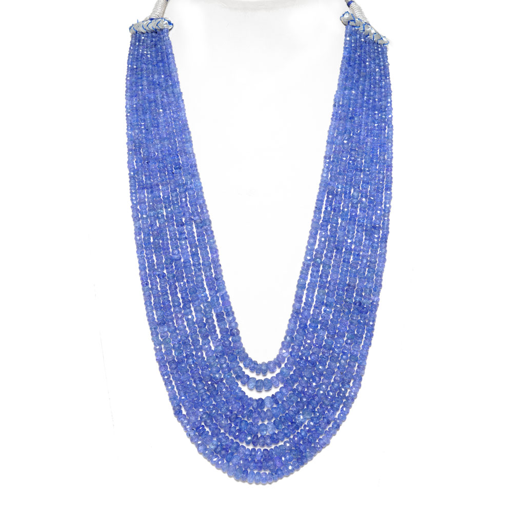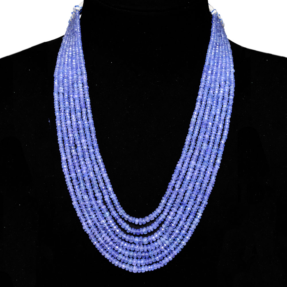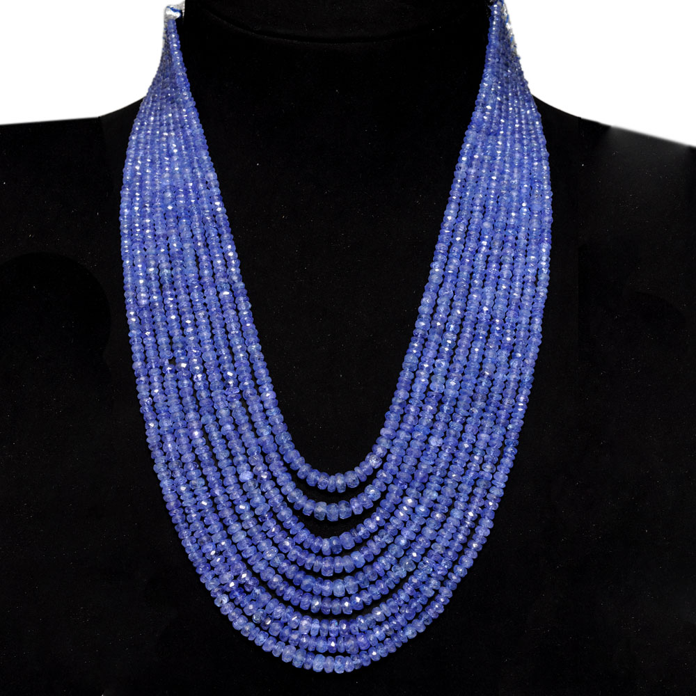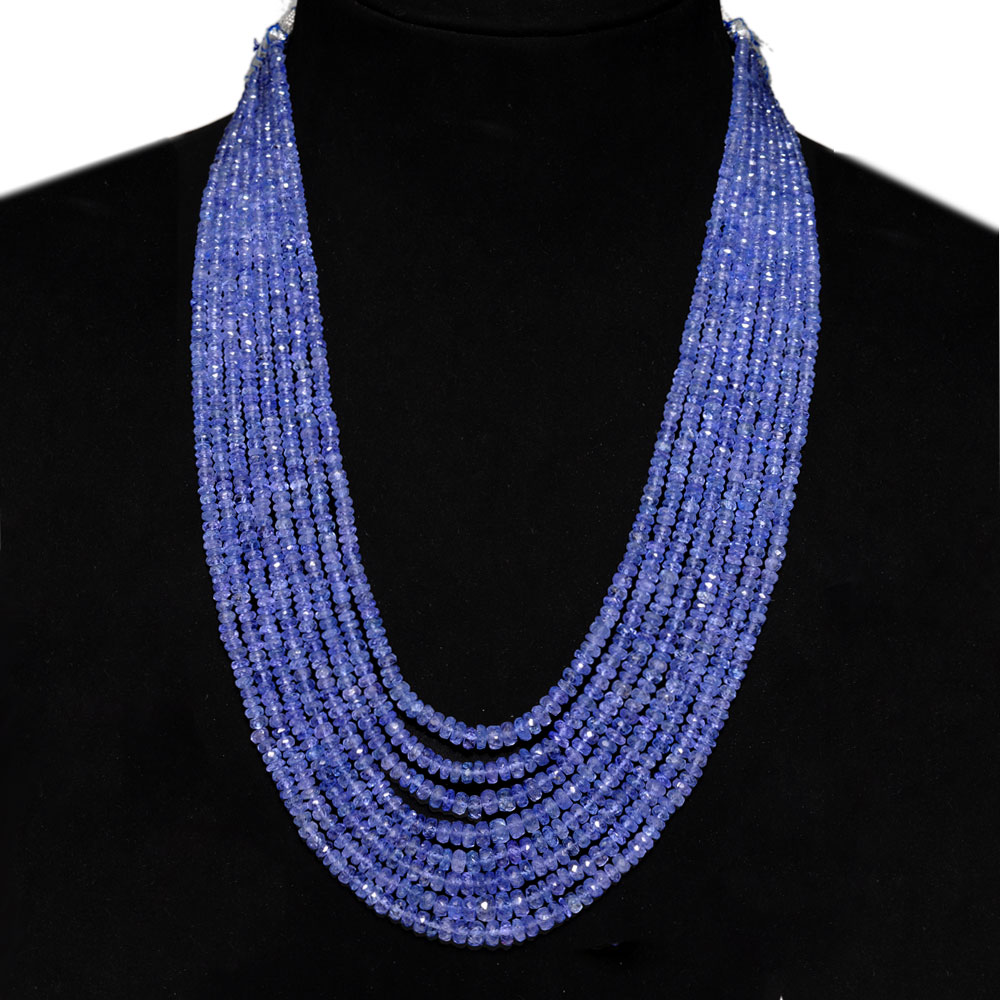9 Lines 734 Caratss Tanzanite Gemstone Faceted Beads Necklace