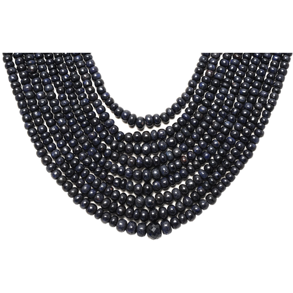 9 Lines 886 Carats Blue Sapphire Gemstone Plain Bead Necklace