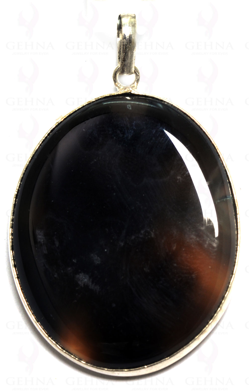 Gehna Jaipur agate gemstone pendant in .925 sterling overlay silver. Natural banding and earthy tones add organic elegance.