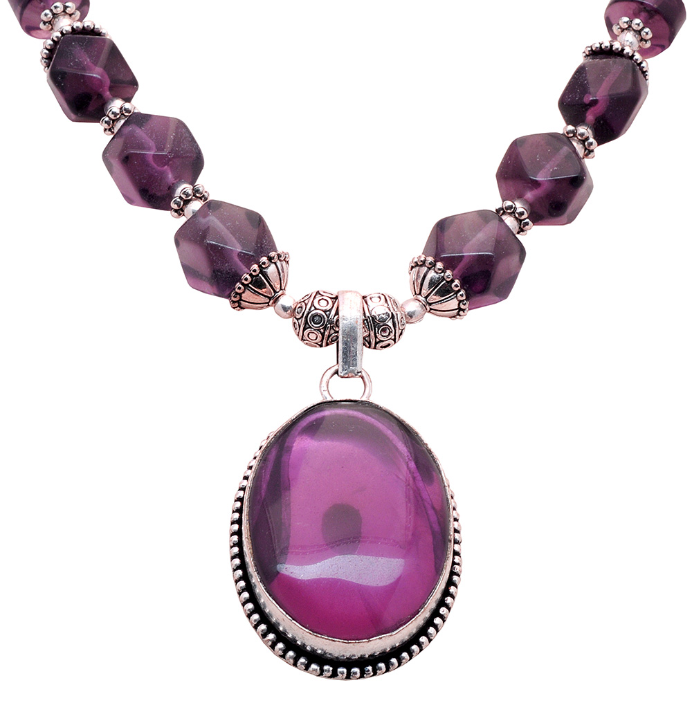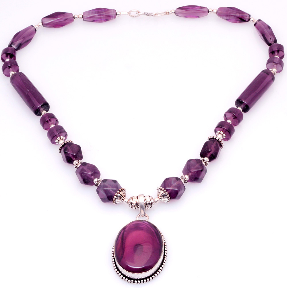 Amethyst gemstone studded necklace & earring set