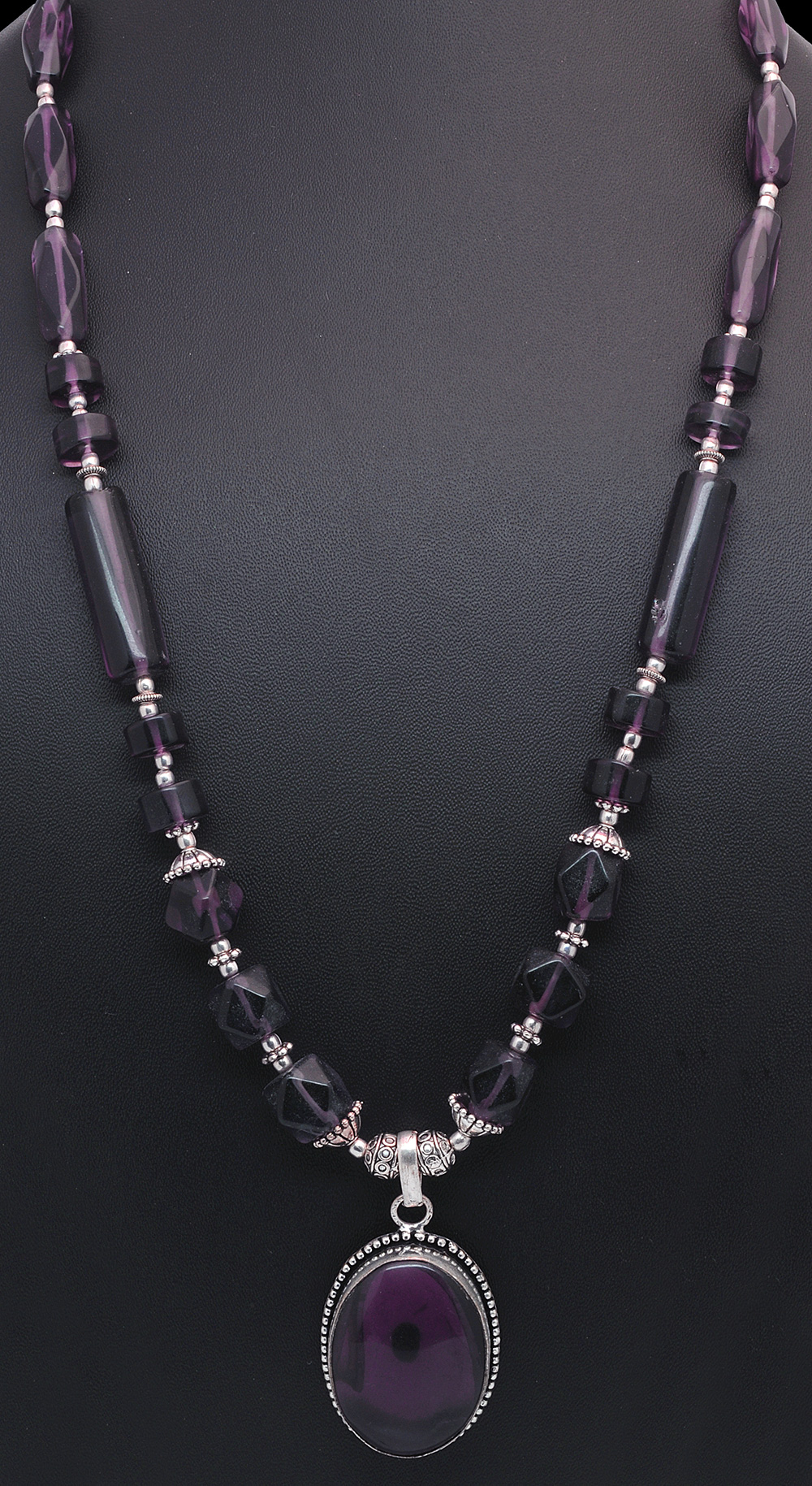 Amethyst gemstone studded necklace & earring set WITH OXIDIZED RHODIUM POLISH