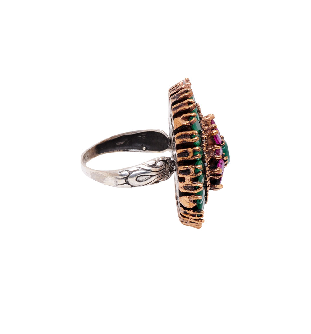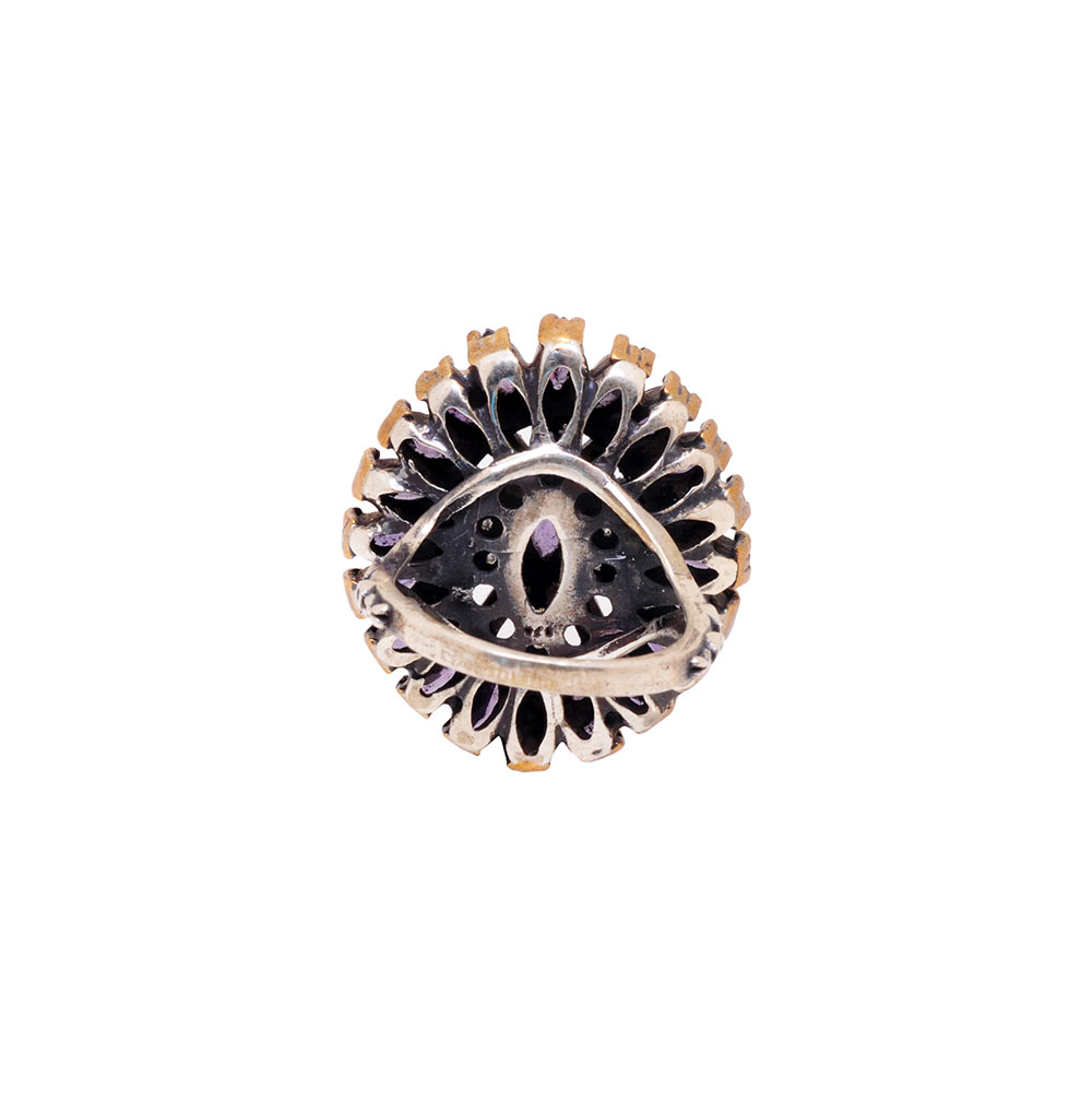 AMETHYST & TOPAZ GEMSTONE STUDDED COCKTAIL RING IN SILVER