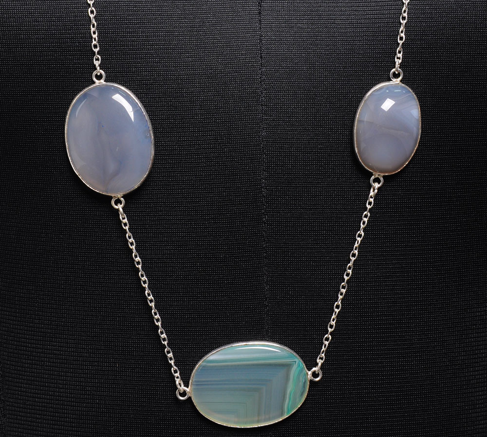 Banded Agate gemstone chain made in .925 sterling silver overlay metal WITH WHITE GOLD RHODIUM POLISH
