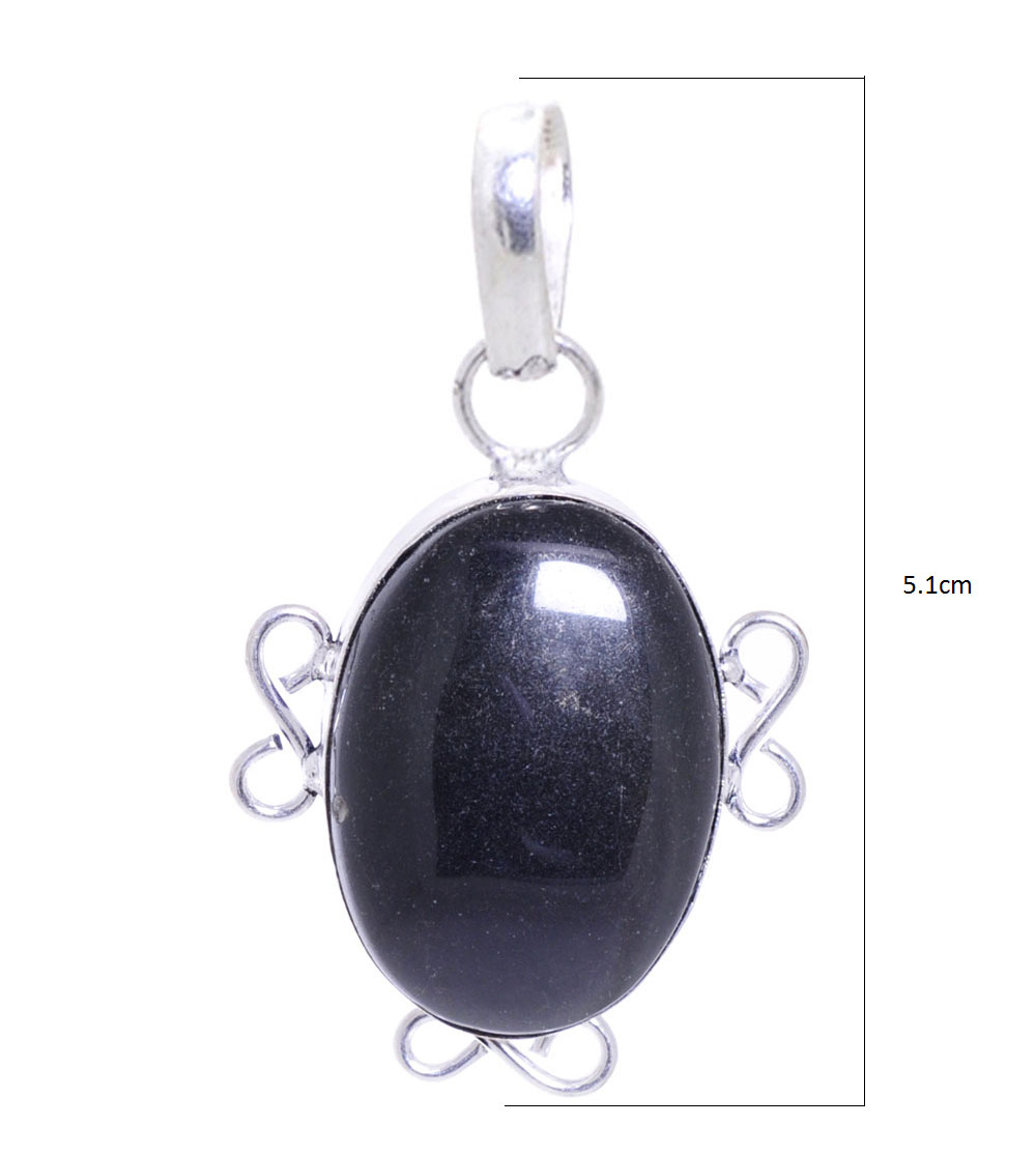 black jasper gemstone pendant in 925 sterling silver overlay metal
