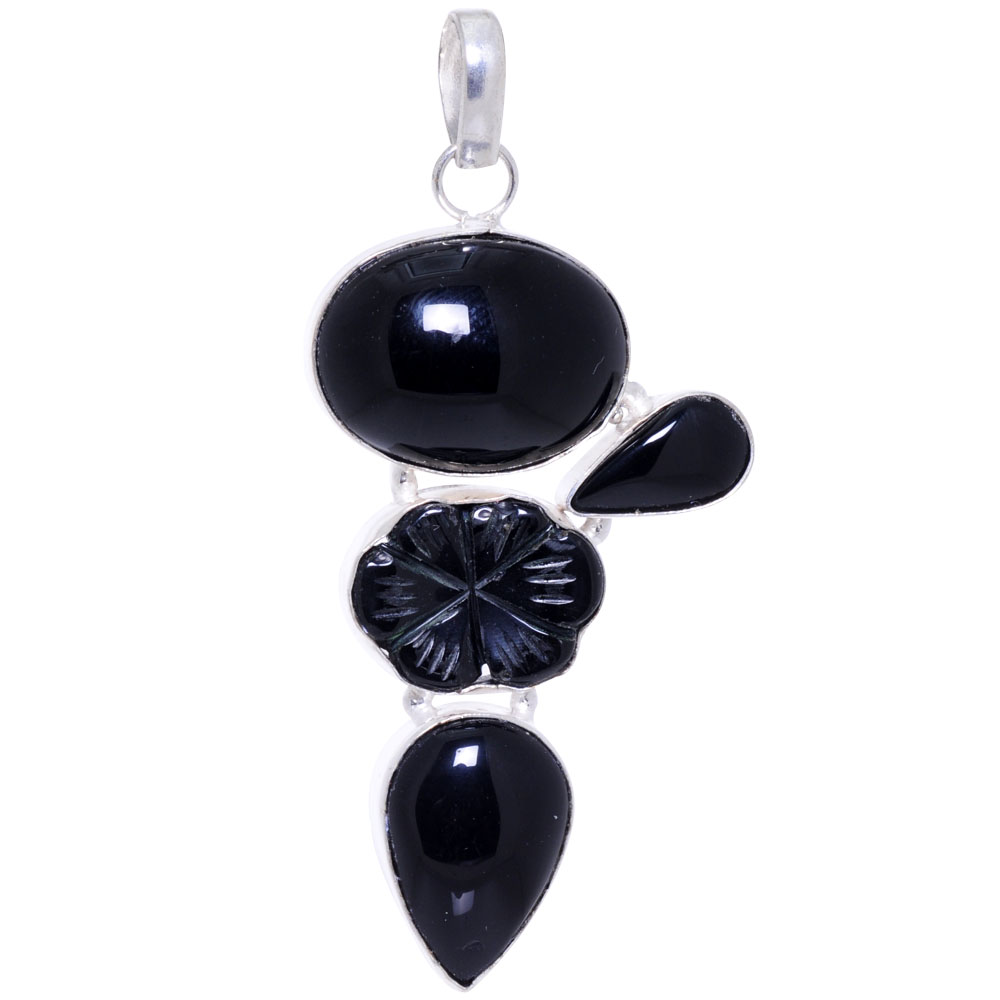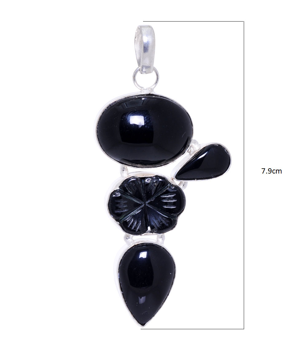 black onyx gemstone pendant in 925 sterling silver overlay metal