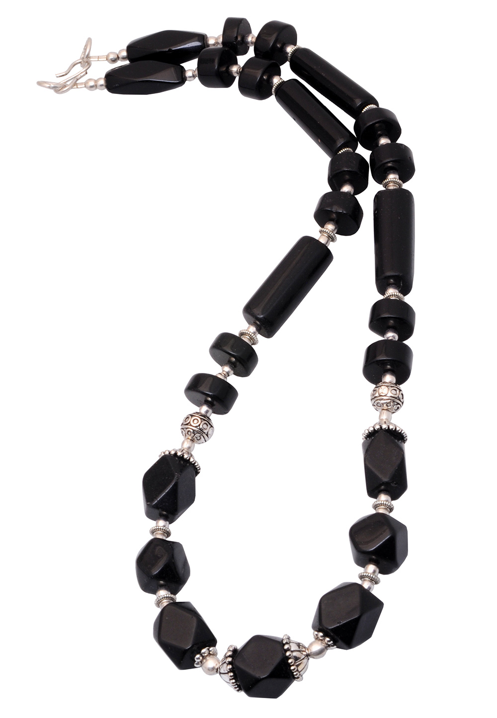 Black Spinel gemstone beaded necklace & earrings set WITH OXIDIZED RHODIUM POLISH