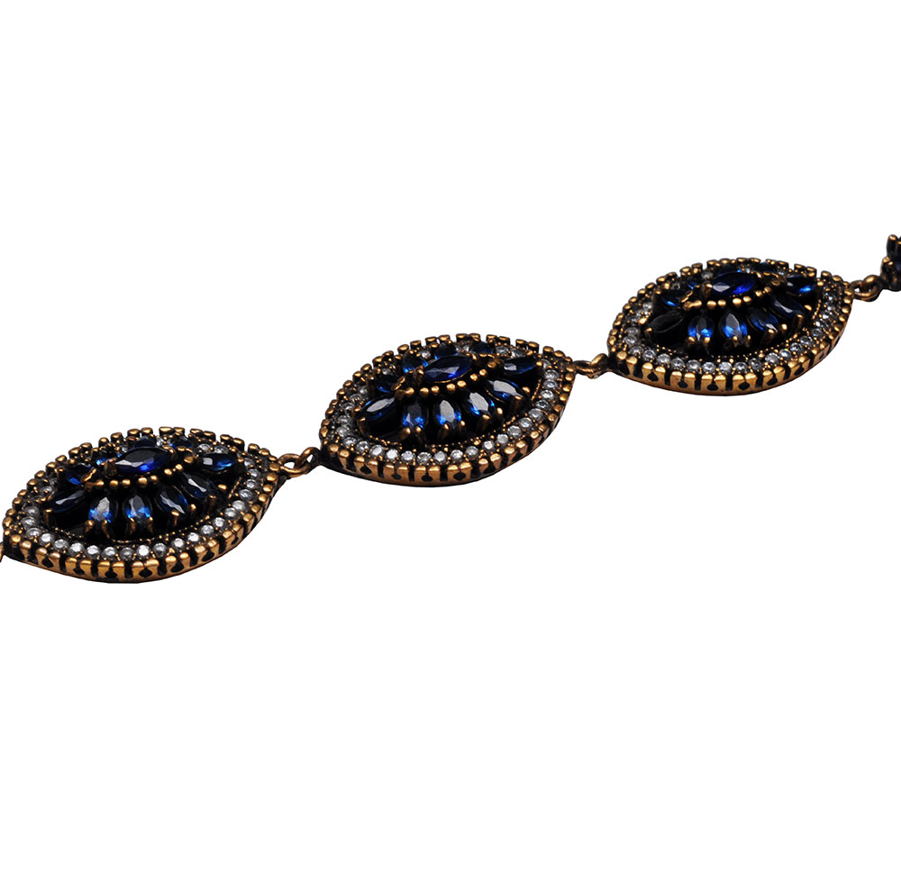 BLUE SAPPHIRE & TOPAZ GEMSTONE STUDDED SILVER BRACELET
