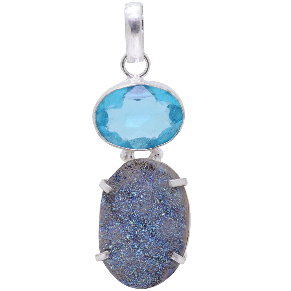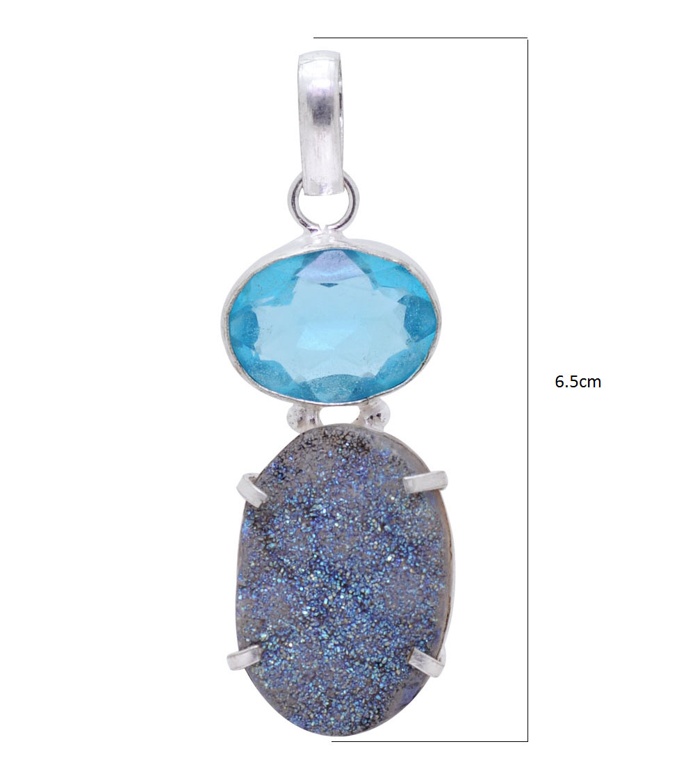 blue topaz & Druzy gemstone pendant