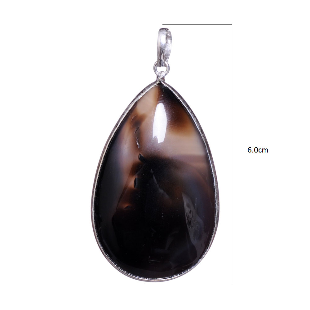 brown dyed agate 925 sterling silver overlay pendant 60 x 30 mm