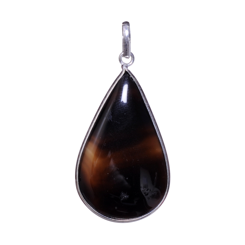 A bold brown dyed agate pendant in 925 sterling silver, measuring 60 x 30 mm. The rich hues of this piece make it perfect for adding warmth and depth to your wardrobe.