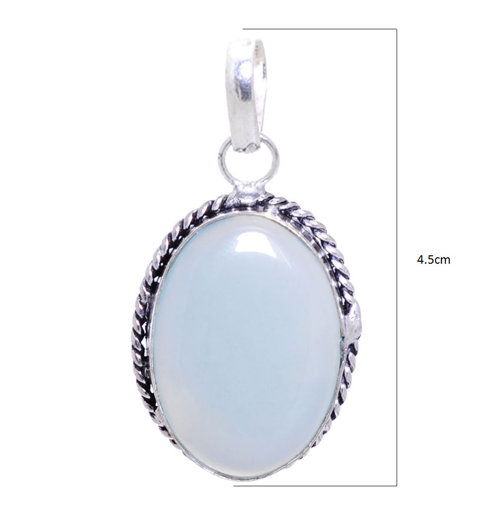 Gehna Jaipur Chalcedony gemstone pendant crafted in 925 sterling silver overlay features soothing tones and a glossy finish. Perfect for adding soft elegance and versatility to daily wear.