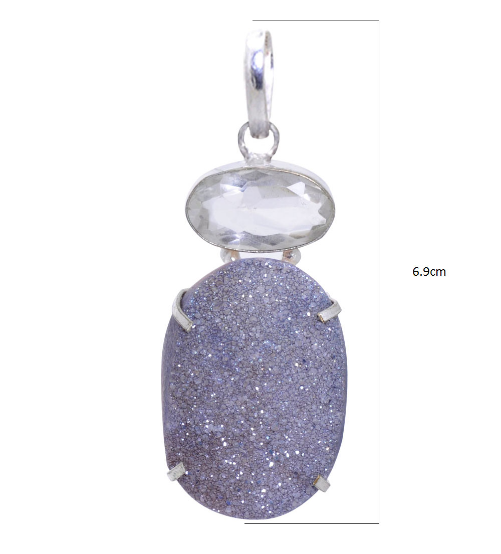 crystal & Druzy gemstone pendant in 925 sterling silver overlay metal