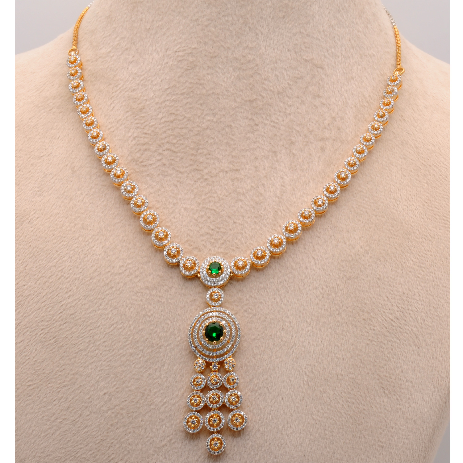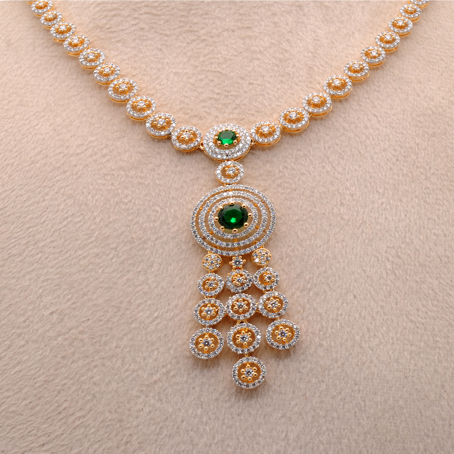 Cubic Zirconia & Emerald Color Stone Studded Necklace & Earring Set